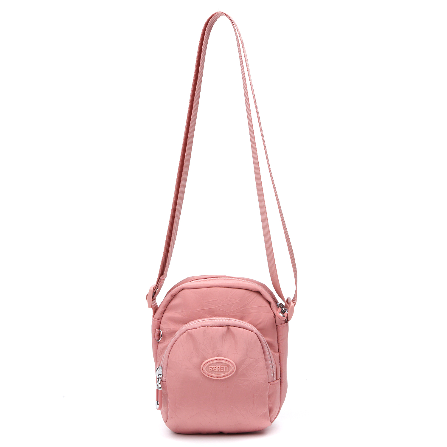 Компактная текстильная кросс-боди FABRETTI в розовом оттенке выполнена из высокотехнологичного влагостойкого полиэстера жатой фактуры. Он практичен и прост в уходе. Основное отделение закрывается на полукруглую влагостойкую молнию. Внутри есть открытый боковой карман для мелочей. На лицевой стороне расположен карман быстрого доступа на влагостойкой молнии. Текстильный плечевой ремень регулируется по длине, ширина - 3 см. Сумка станет незаменимым аксессуаром в любой поездке, а также гармонично впишется в стиль casual.