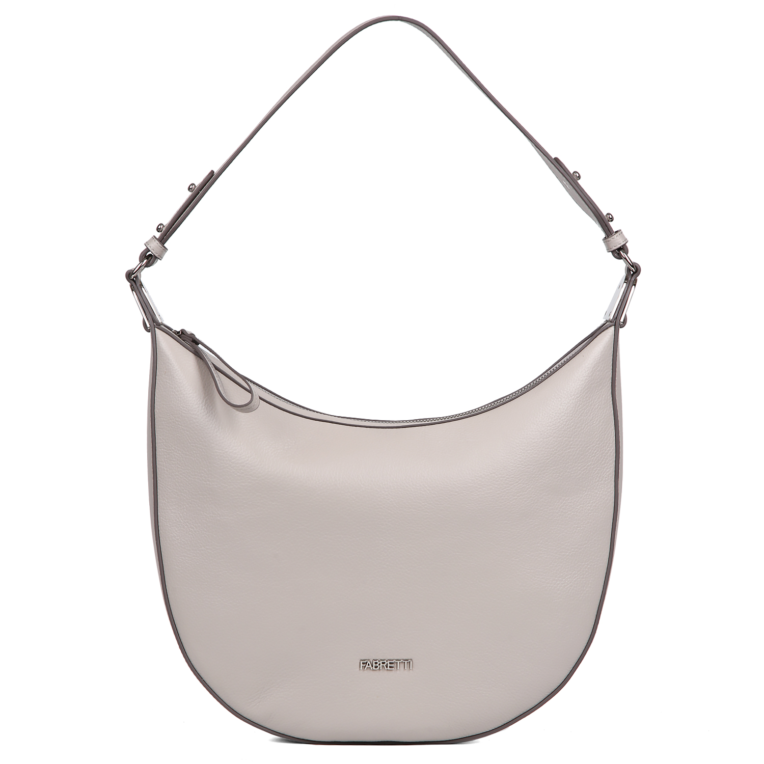 Сумка-хобо FABRETTI выполнена из натуральной зернистой кожи в сером цвете. Модель отличает практичность и минималистичный дизайн. Просторное отделение закрывается на молнию с удобным кожаным поводком. Внутри - 3 боковых кармана: 2 открытых и на молнии. На лицевой стороне располагается шильд FABRETTI. На тыльной стороне предусмотрен карман быстрого доступа на молнии. Плечевой ремень регулируется по длине.