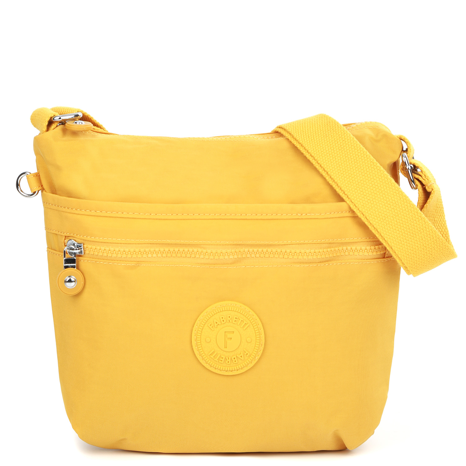 Текстильная сумка кросс-боди FABRETTI в желтом оттенке выполнена из высокотехнологичного влагостойкого полиэстера легкой жатой фактуры. Он практичен и прост в уходе. Основное отделение закрывается на молнию с удобным поводком. Внутри есть 3 боковых кармана для мелочей: 2 открытых и на молнии. Карабин на шнурке поможет быстро найти ключи в сумке. На лицевой стороне расположены 2 вместительных кармана на молнии. На тыльной стороне предусмотрен вместительный карман быстрого доступа на молнии. Текстильный плечевой ремень регулируется по длине, ширина - 3 см.
