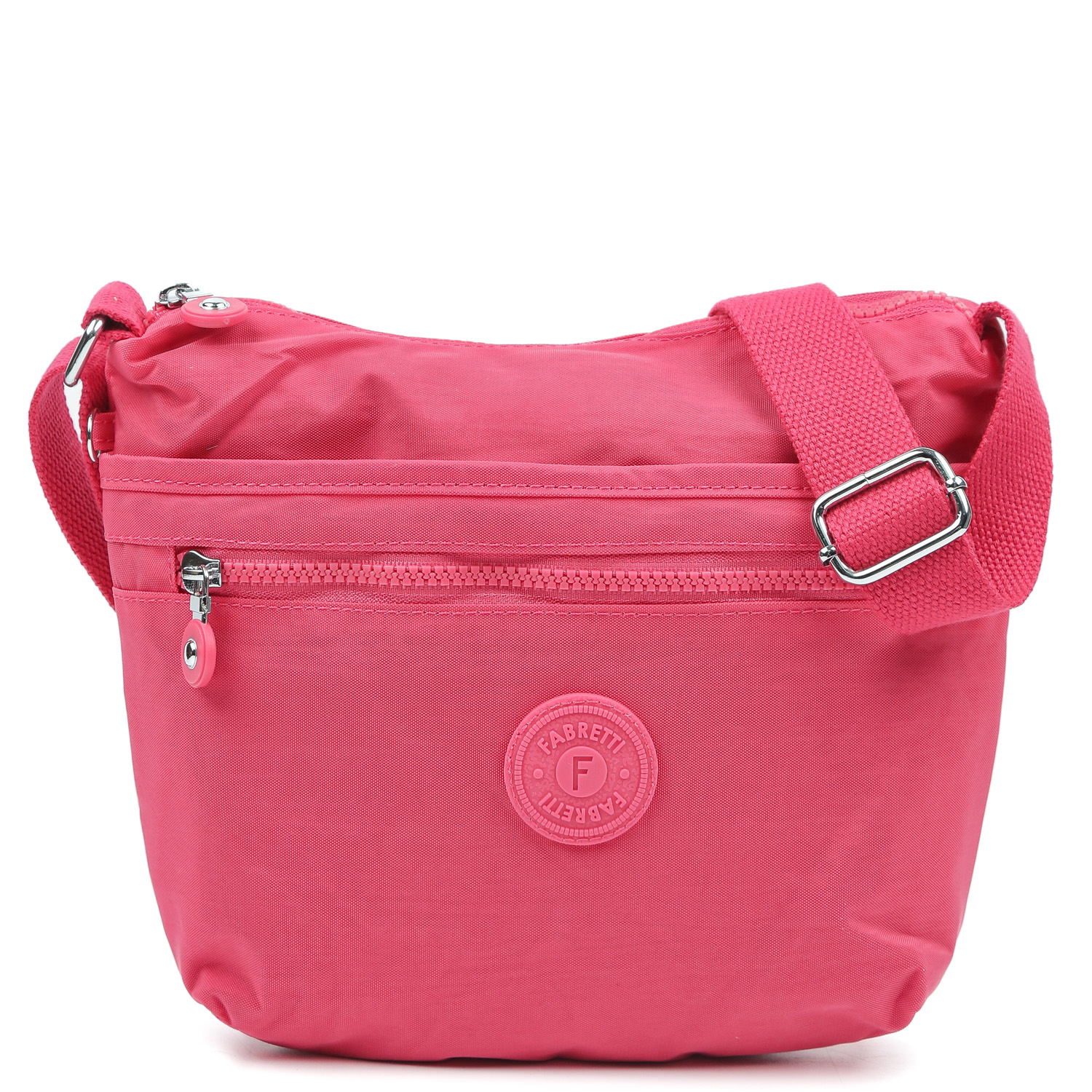 Текстильная сумка кросс-боди FABRETTI в малиновом оттенке выполнена из высокотехнологичного влагостойкого полиэстера легкой жатой фактуры. Он практичен и прост в уходе. Основное отделение закрывается на молнию с удобным поводком. Внутри есть 3 боковых кармана для мелочей: 2 открытых и на молнии. Карабин на шнурке поможет быстро найти ключи в сумке. На лицевой стороне расположены 2 вместительных кармана на молнии. На тыльной стороне предусмотрен вместительный карман быстрого доступа на молнии. Текстильный плечевой ремень регулируется по длине, ширина - 3 см.
