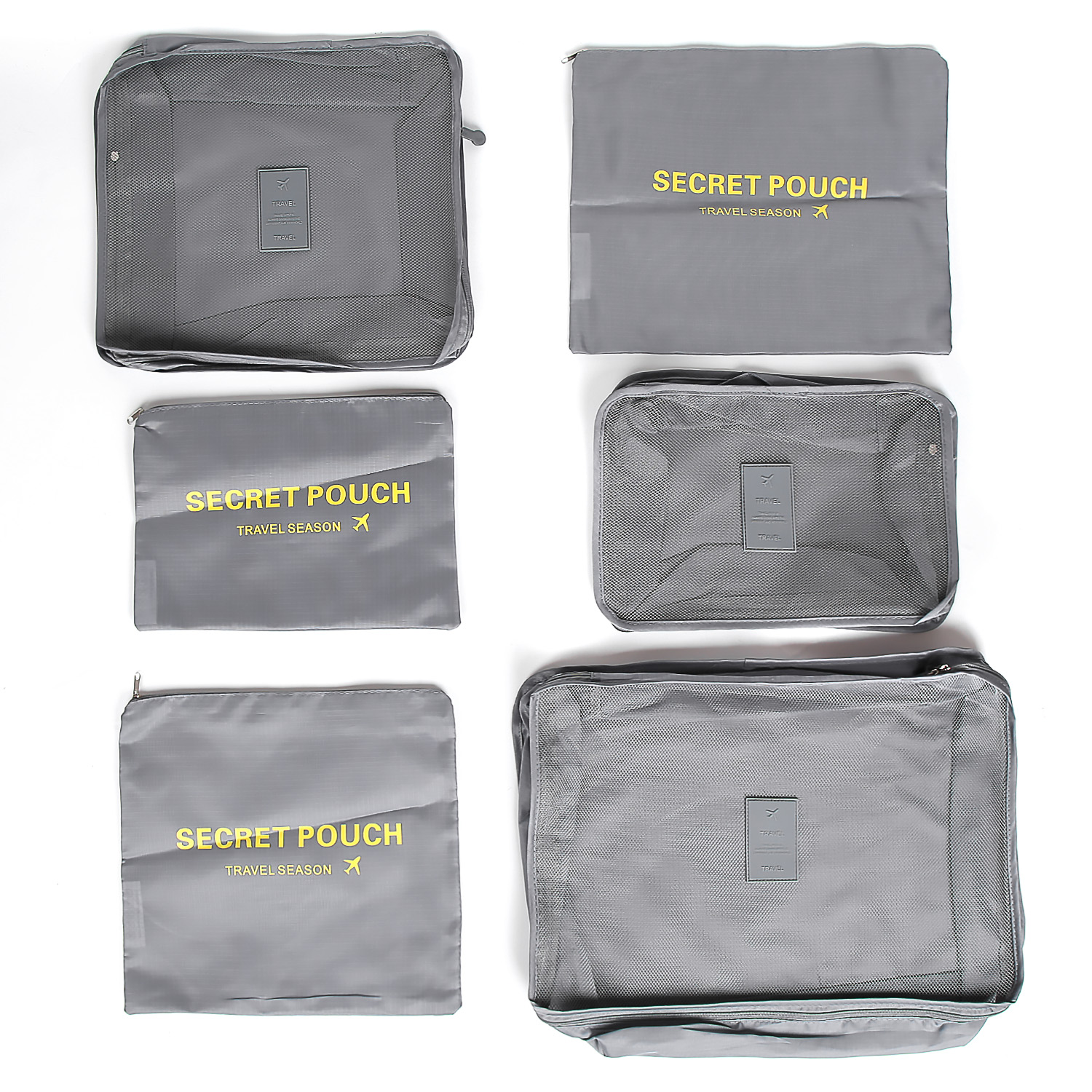 Набор дорожных органайзеров FABRETTI, 6 шт. В комплекте: 3 дорожные сумки на молнии с сеткой и ручкой 40х30х12 см, 30х27х12 см, 30х20х8 см и 3 органайзера-конверта на молнии 36х28 см, 28х26 см, 26х17 см. Комплект изготовлен из износостойкого качественного полиэстера в сером цвете. Дорожный набор идеально подходит для хранения вещей и разных мелочей. В поездках органайзеры обеспечат порядок в чемодане и в номере, при этом защитят ваши вещи от пыли, грязи, влаги и механических повреждений. Могут использоваться как органайзеры для хранения вещей, белья, обуви в шкафу, в комоде, в прихожей или в спальне.