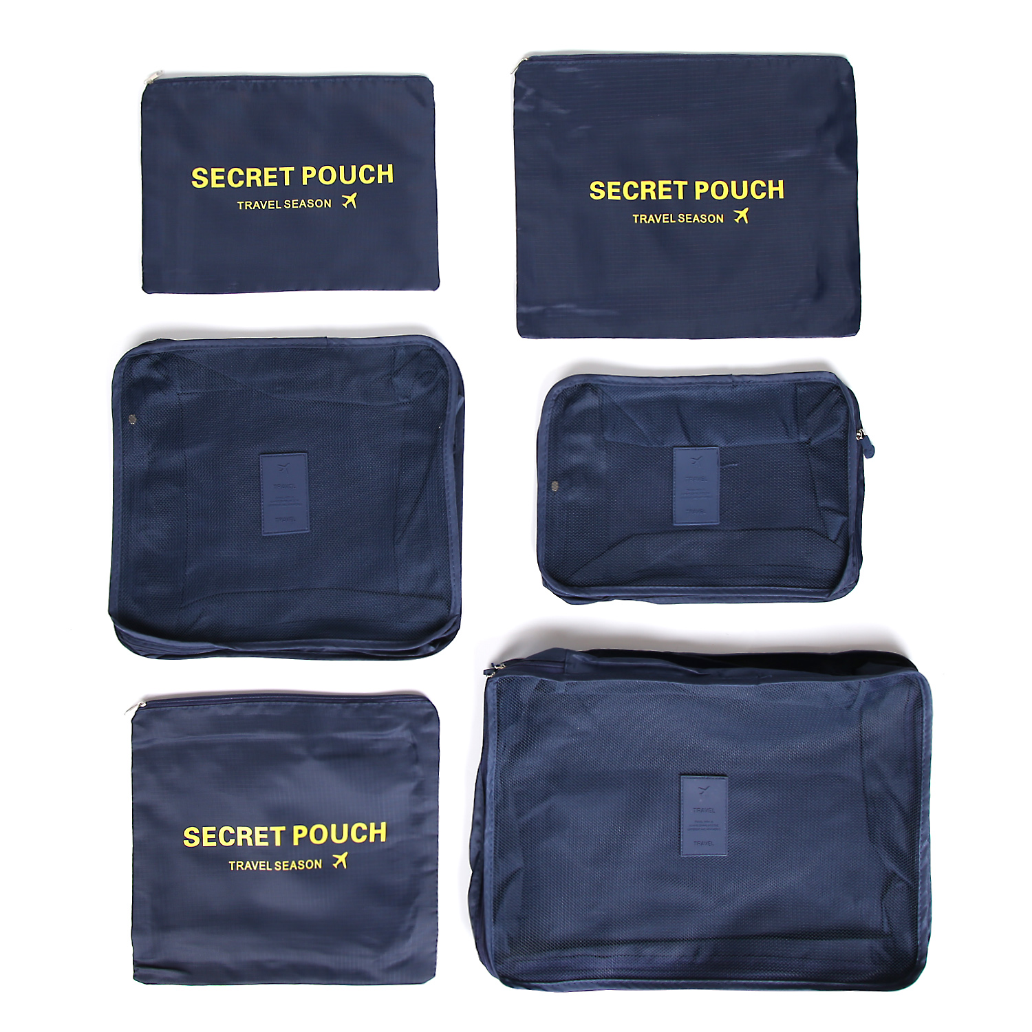 Набор дорожных органайзеров FABRETTI, 6 шт. В комплекте: 3 дорожные сумки на молнии с сеткой и ручкой 40х30х12 см, 30х27х12 см, 30х20х8 см и 3 органайзера-конверта на молнии 36х28 см, 28х26 см, 26х17 см. Комплект изготовлен из износостойкого качественного полиэстера в темно-синем цвете. Дорожный набор идеально подходит для хранения вещей и разных мелочей. В поездках органайзеры обеспечат порядок в чемодане и в номере, при этом защитят ваши вещи от пыли, грязи, влаги и механических повреждений. Могут использоваться как органайзеры для хранения вещей, белья, обуви в шкафу, в комоде, в прихожей или в спальне.