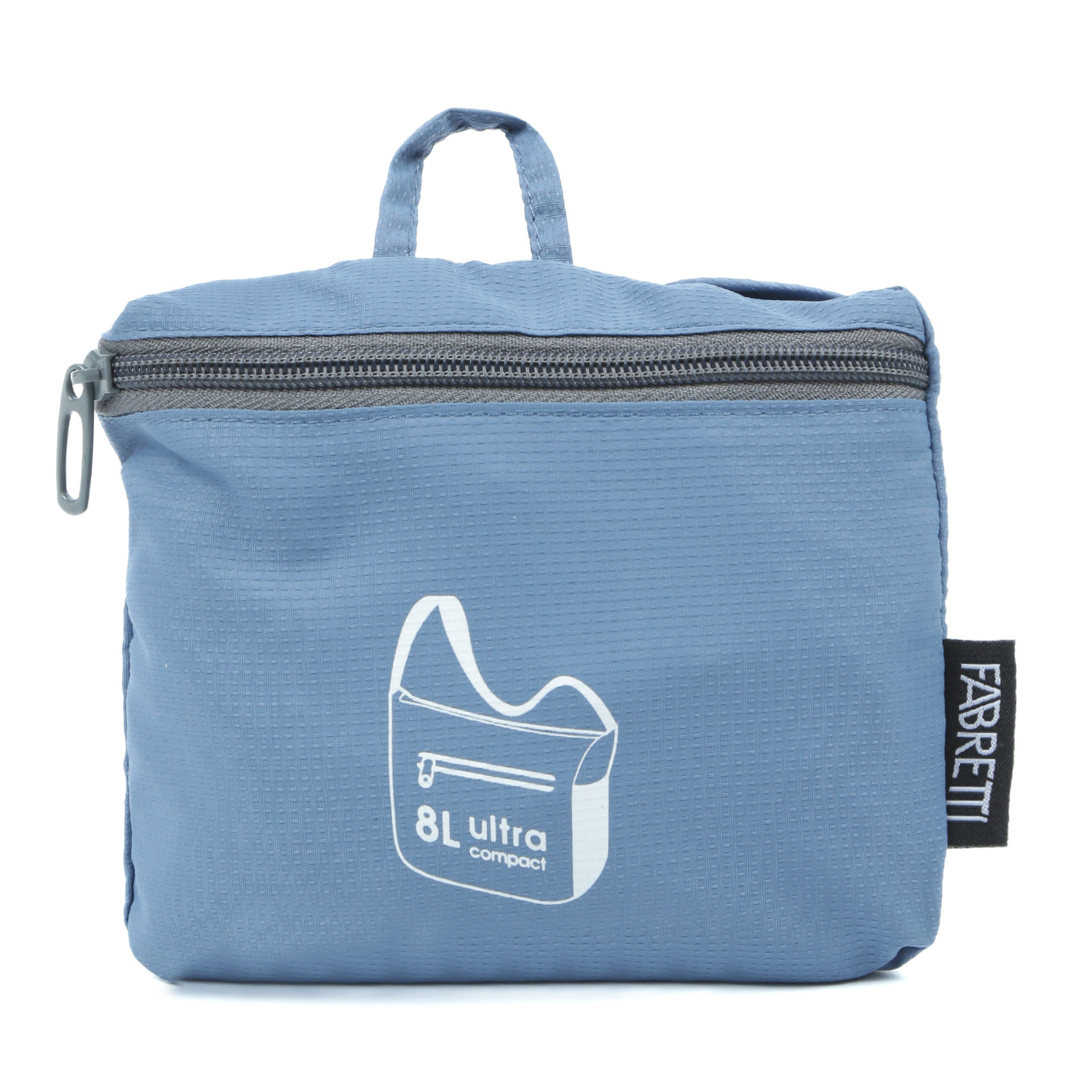 Складная текстильная сумка FABRETTI - незаменимый аксессуар для путешествий. Размер в сложенном виде: 16*15*3 см. Модель в голубом оттенке выполнена из влагостойкого высокотехнологичного полиэстера, практичного и легкого в уходе. Сумка разворачивается в достаточно вместительный аксессуар с отделением на влагозащитной молнии. На лицевой стороне расположен карман быстрого доступа на молнии. По бокам есть открытые карманы на резинке. Плечевой ремень регулируется по длине, ширина - 4 см.