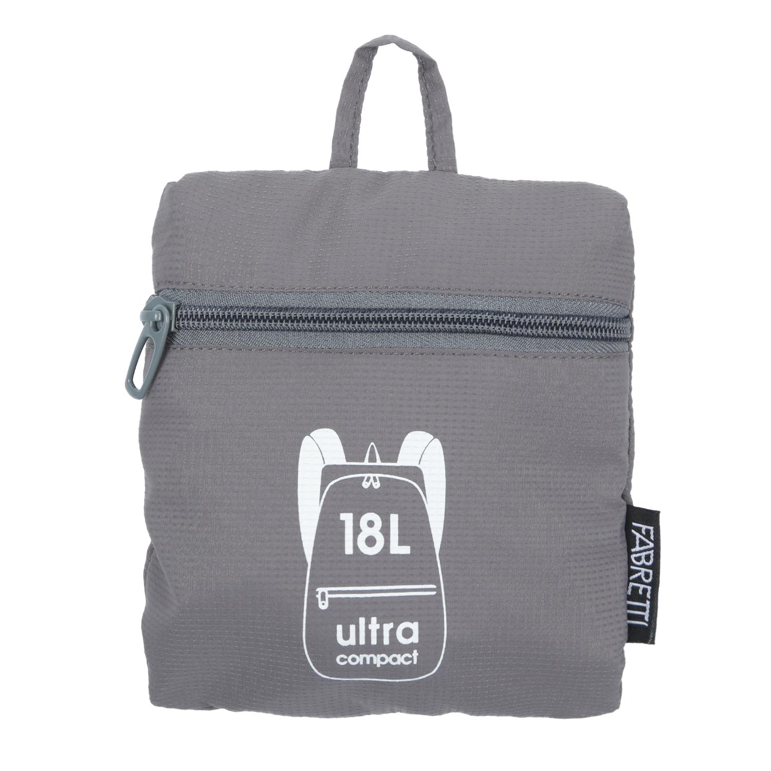 Складной текстильный рюкзак FABRETTI - незаменимый аксессуар для путешествий. Размер в сложенном виде: 15*18*2 см. Модель в сером оттенке выполнена из влагостойкого высокотехнологичного полиэстера, практичного и легкого в уходе. Рюкзак разворачивается в достаточно вместительный аксессуар. Основное отделение закрывается на полукруглую влагозащитную молнию с 2 бегунками. На лицевой стороне расположен накладной карман на молнии. Сверху предусмотрена ручка. Лямки регулируются по длине, ширина - 6 см.