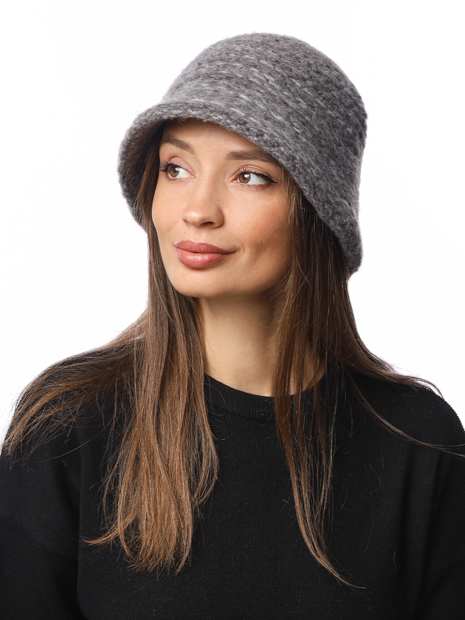 Женская шляпа-клош FABRETTI крупной вязки в сером цвете.