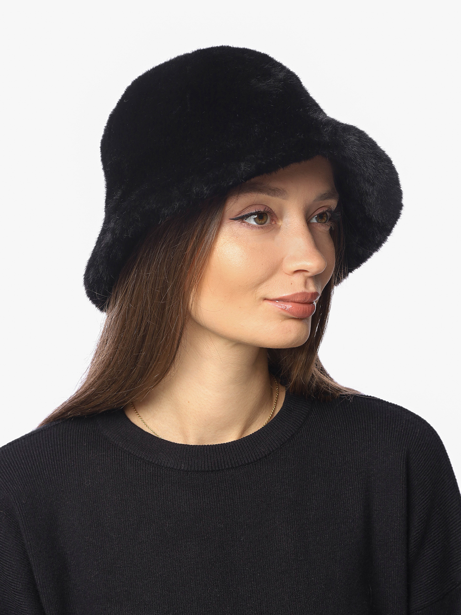 Женская панама FABRETTI из нежного экомеха норки в классическом черном цвете. Теплая, уютная, приятная на ощупь, эта панама идеально подходит для холодного сезона.