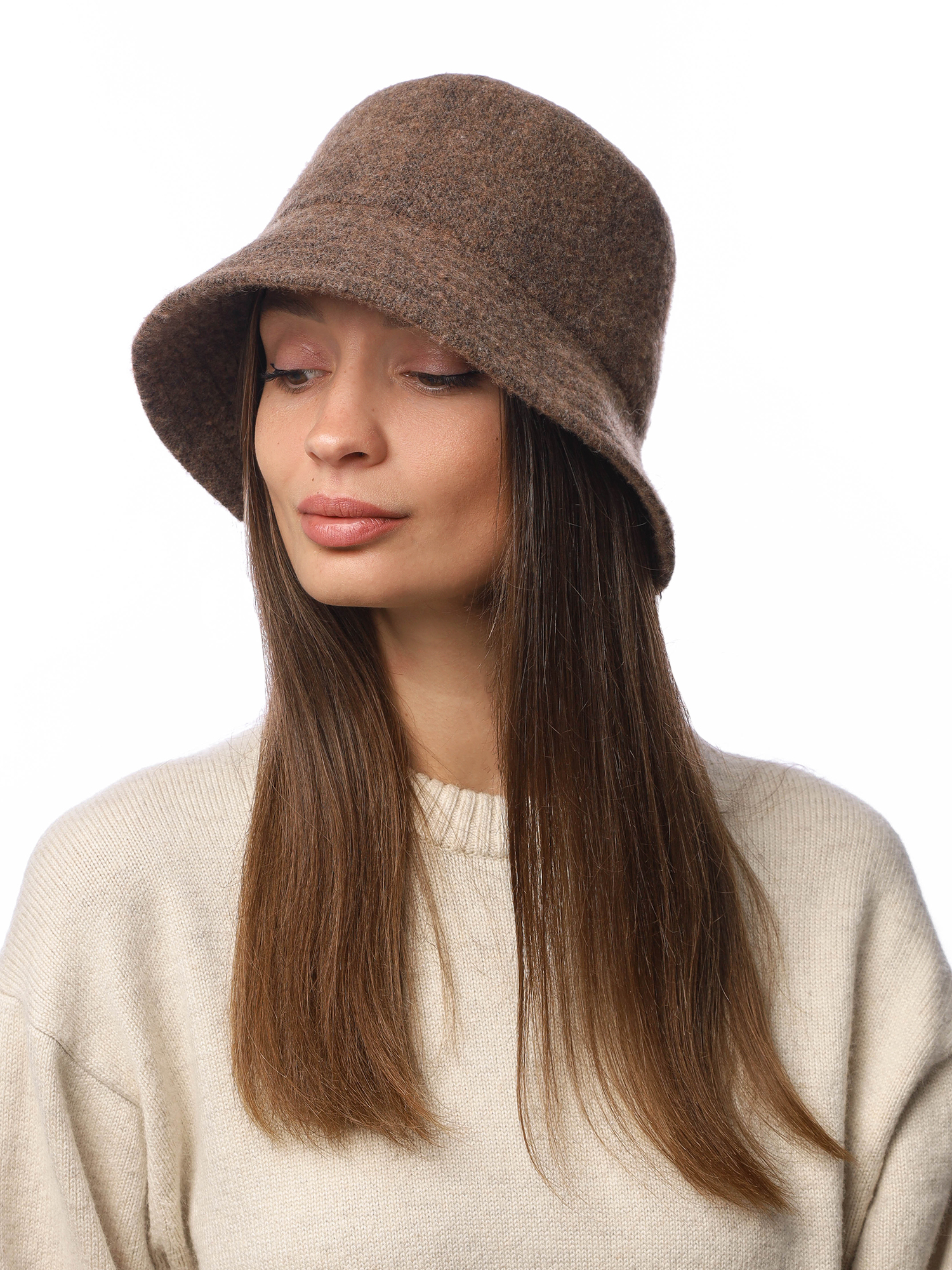 Интересная женская шляпа FABRETTI для холодного сезона в коричневом оттенке. Модель в форме панами дополнена небольшими двуслойными полями с отстрочкой. Посадка глубокая, плотная, комфортная.