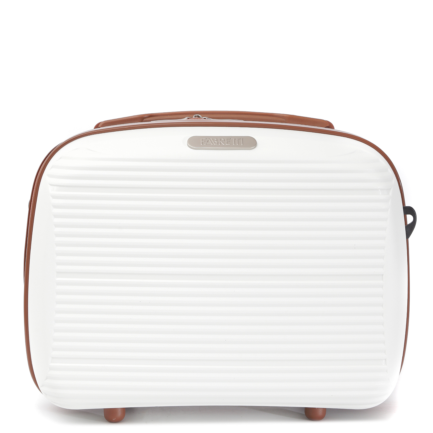 Бьюти-кейс FABRETTI выполнен из полипропилена - современного материала, для которого характерны высокая ударопрочность, стойкость к перепадам температур, отличная износостойкость. Основной белый цвет подчеркнут коричневым оттенком в деталях аксессуара. Основное отделение закрывается на полукруглую молнию с двумя бегунками и имеет «ушки» для навесного замка (замок в комплект не входит). Внутри 3 боковых кармана для мелочей: 2 открытые с фиксирующими резинками и один на молнии. Текстильные ограничители на липучках. На тыльной стороне предусмотрена резинка, позволяющая крепить аксессуар на ручку чемодана.  Сверху есть ручка. Дно аксессуара защищают 4 ножки. В комплекте есть съемный плечевой ремень с резиновой плечевой накладкой (ширина - 3,5 см, длина - 115 см).