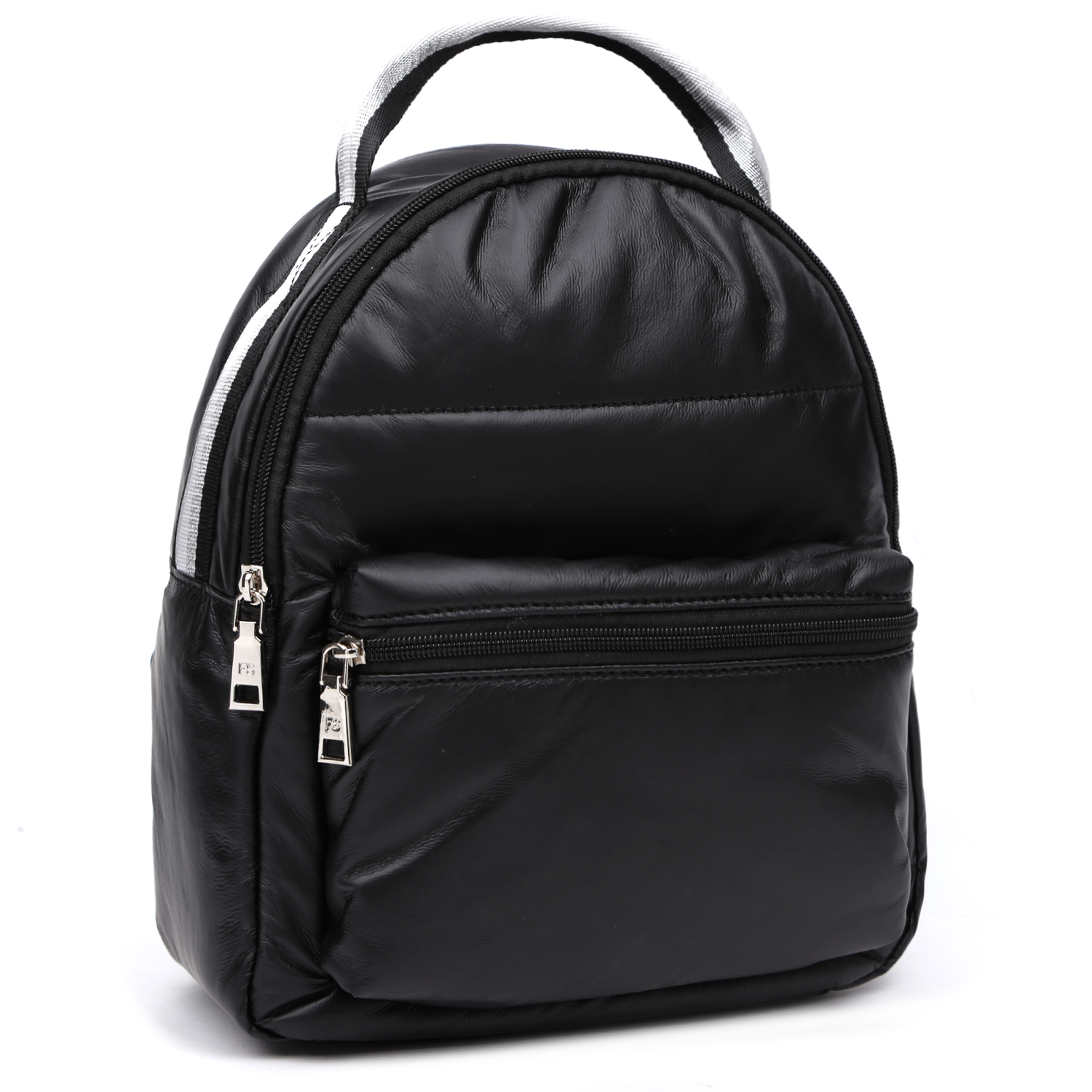 Оригинальный дутый рюкзак FABRETTI выполнен из экокожи в черном цвете. Высокотехнологичный материал на полиуретановой основе обладает водоотталкивающими свойствами, устойчив к температурным перепадам до -25 C, приятен на ощупь. Основное отделение закрывается на молнию. Внутри есть 2 боковых кармана для мелочей: открытый и на молнии. На лицевой стороне расположен вместительный накладной карман. Лямки регулируются по длине. Текстильная ручка, позволяющая комфортно носить изделие в руке, служит элементом декора и гармонично вписана в дизайн изделия. Цвет фурнитуры – серебро.