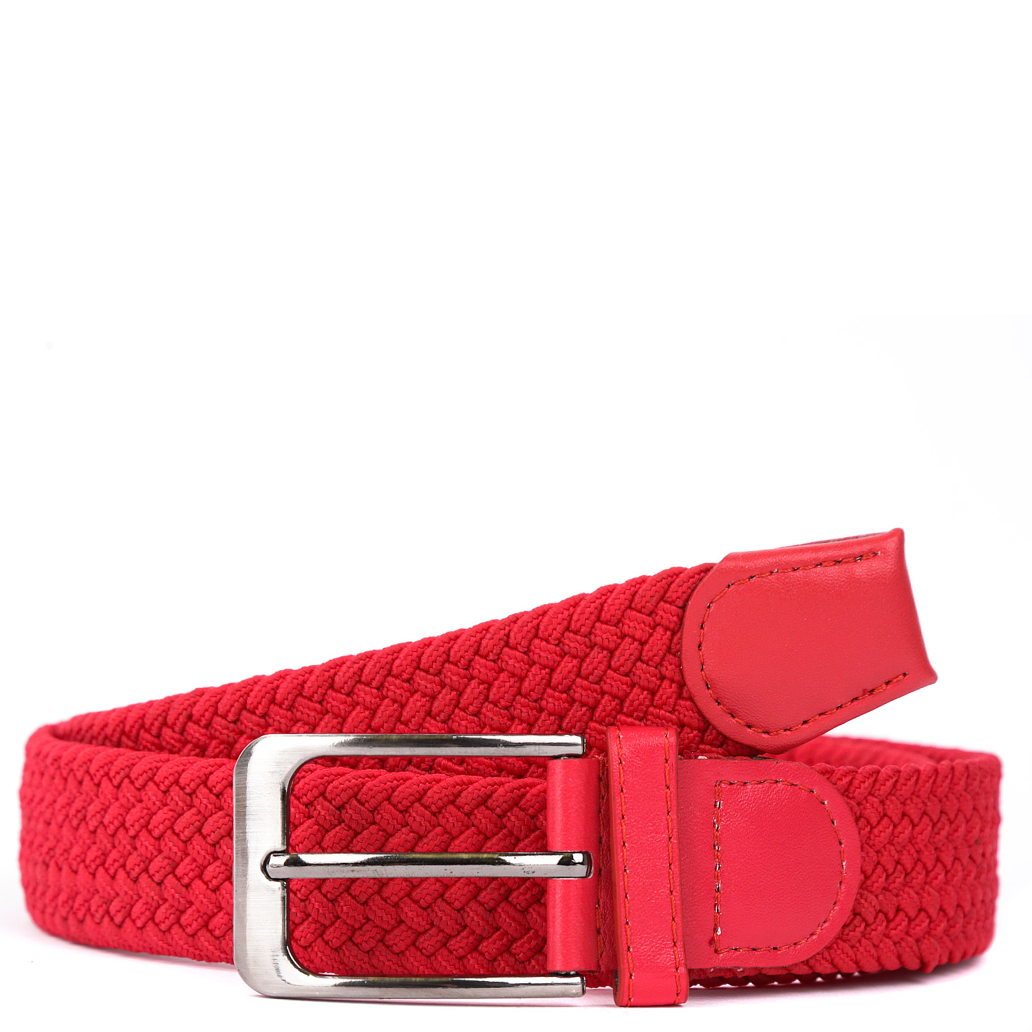 Яркий удобный ремень-резинка FABRETTI универсален и подойдет как мужчинам, так и женщинам. Модель выполнена в насыщенном красном цвете, который прекрасно дополнит образы в стиле casual. Геометрическое плетение и добавление стрейчевой нити делают аксессуар подходящим любому типу фигуры. Он приятен на ощупь, неприхотлив в уходе. Для отделки использована экокожа в тон изделию. Прямоугольная пряжка с покрытием никель надолго сохранит свой вид и фактуру.