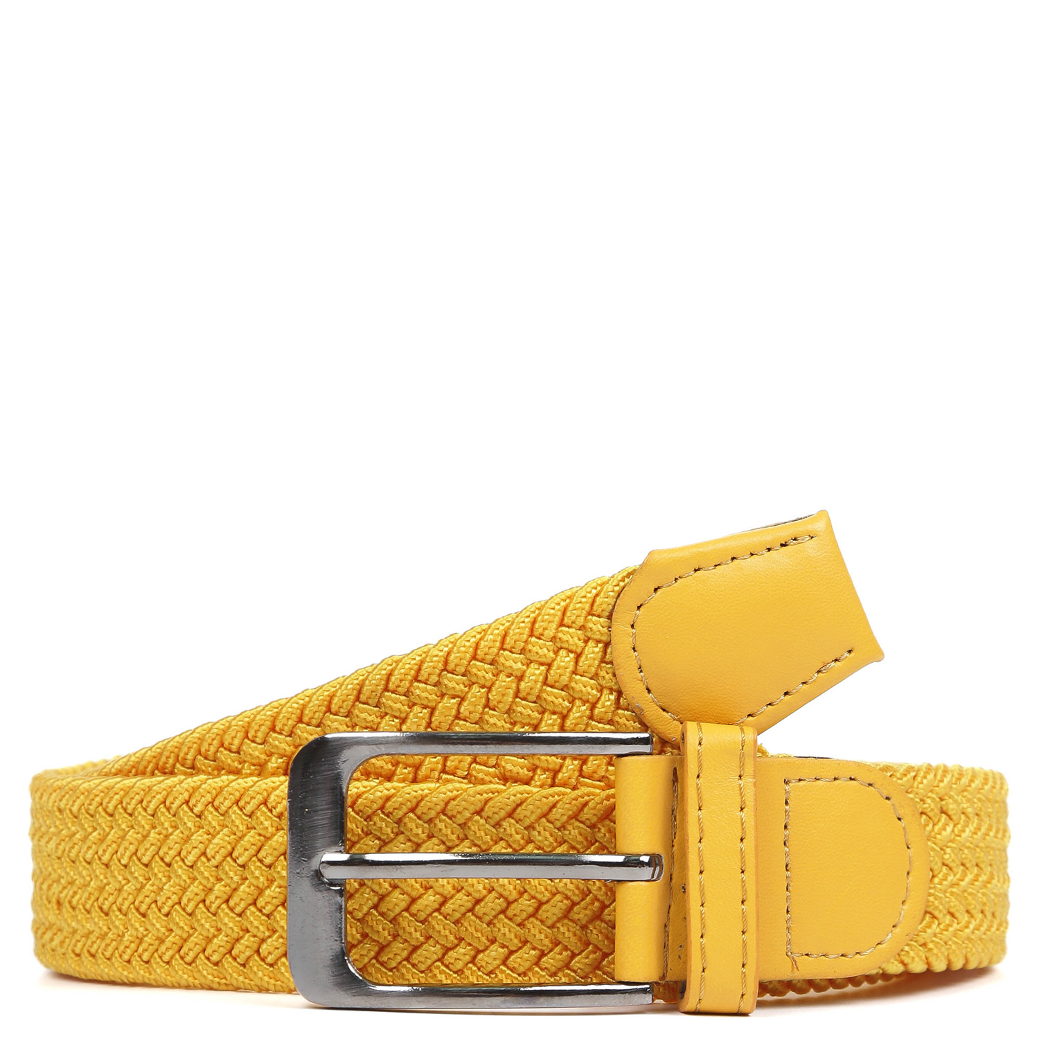 Яркий удобный ремень-резинка FABRETTI универсален и подойдет как мужчинам, так и женщинам. Модель выполнена в горчичном оттенке, который прекрасно дополнит образы в стиле casual. Геометрическое плетение и добавление стрейчевой нити делают аксессуар подходящим любому типу фигуры. Он приятен на ощупь, неприхотлив в уходе. Для отделки использована экокожа в тон изделию. Прямоугольная пряжка с покрытием никель надолго сохранит свой вид и фактуру.