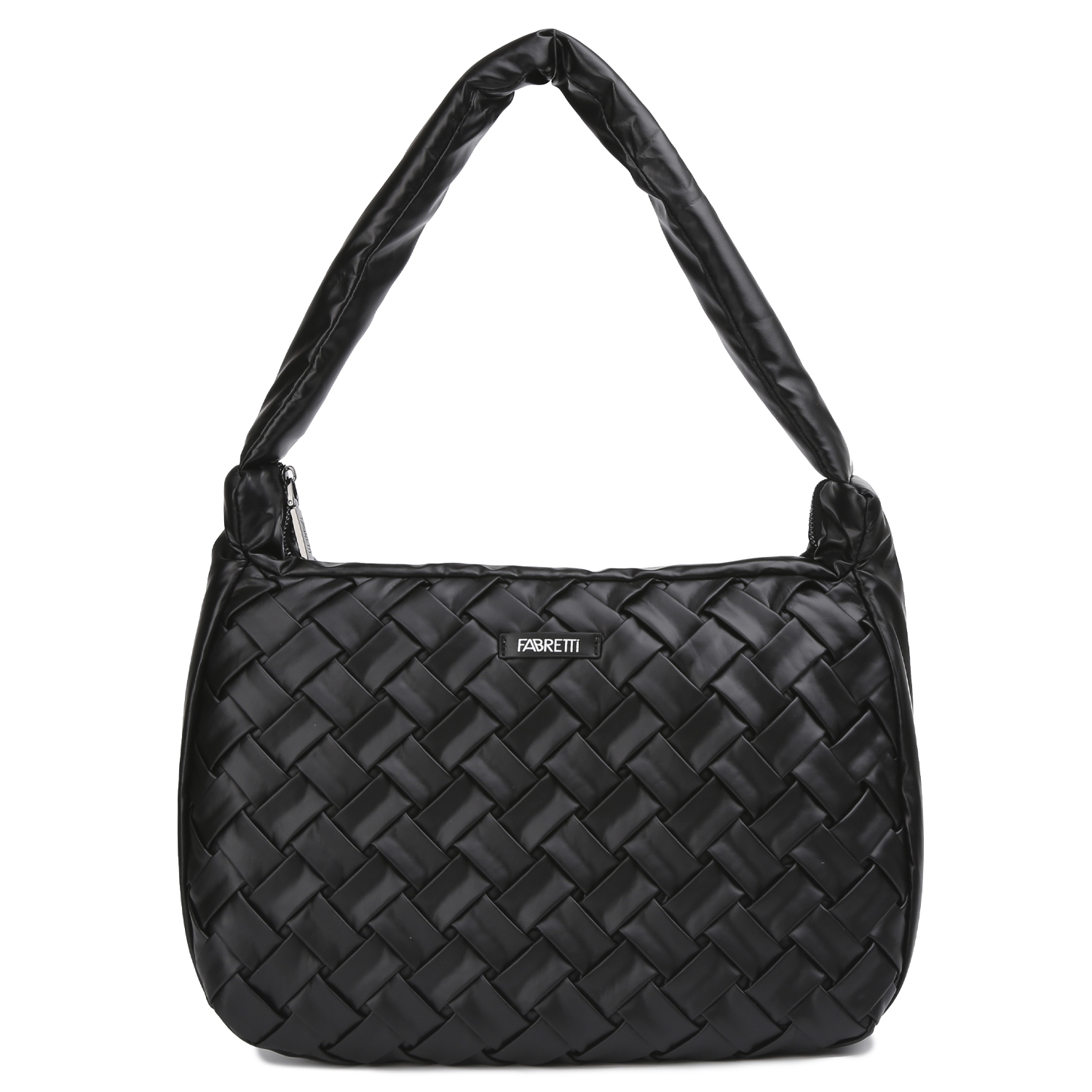 Сумка на плечо FABRETTI в черном оттенке выполнена из высокотехнологичной экокожи, которая устойчива к воздействию влаги и перепаду температур. Основное отделение закрывается на молнию. Внутри 2 боковых кармана для мелочей: открытый и на молнии. Высота ручки - 30 см, ширина - 5 см. Цвет фурнитуры - серебро.