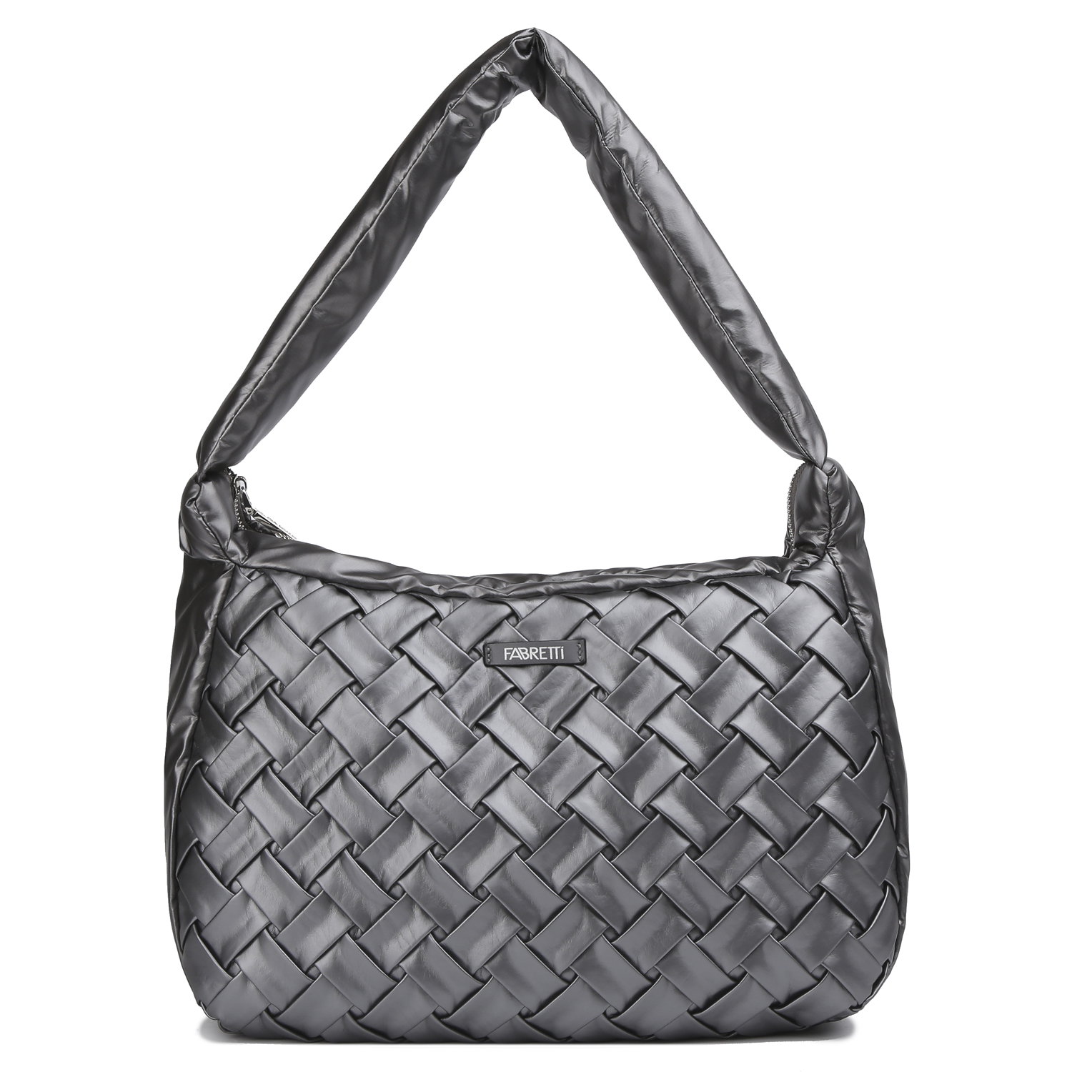 Сумка на плечо FABRETTI в сером оттенке выполнена из высокотехнологичной экокожи, которая устойчива к воздействию влаги и перепаду температур. Основное отделение закрывается на молнию. Внутри 2 боковых кармана для мелочей: открытый и на молнии. Высота ручки - 30 см, ширина - 5 см. Цвет фурнитуры - серебро.