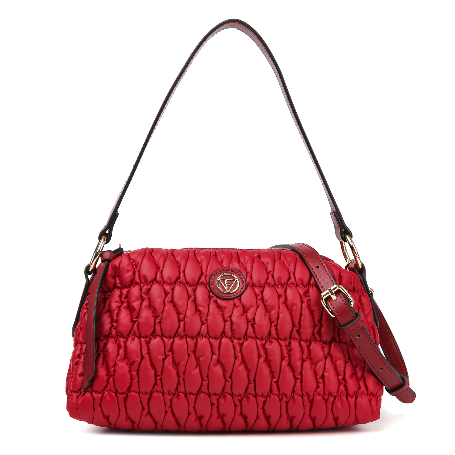 Сумка кросс-боди FABRETTI в красном оттенке выполнена из высокотехнологичной ткани, которая устойчива к воздействию влаги и перепаду температур. Основное отделение закрывается на молнию. Внутри 2 боковых кармана для мелочей: открытый и на молнии. В комплекте съемный плечевой ремень, регулируемый по длине, ширина - 1,5 см. Цвет фурнитуры - золото.