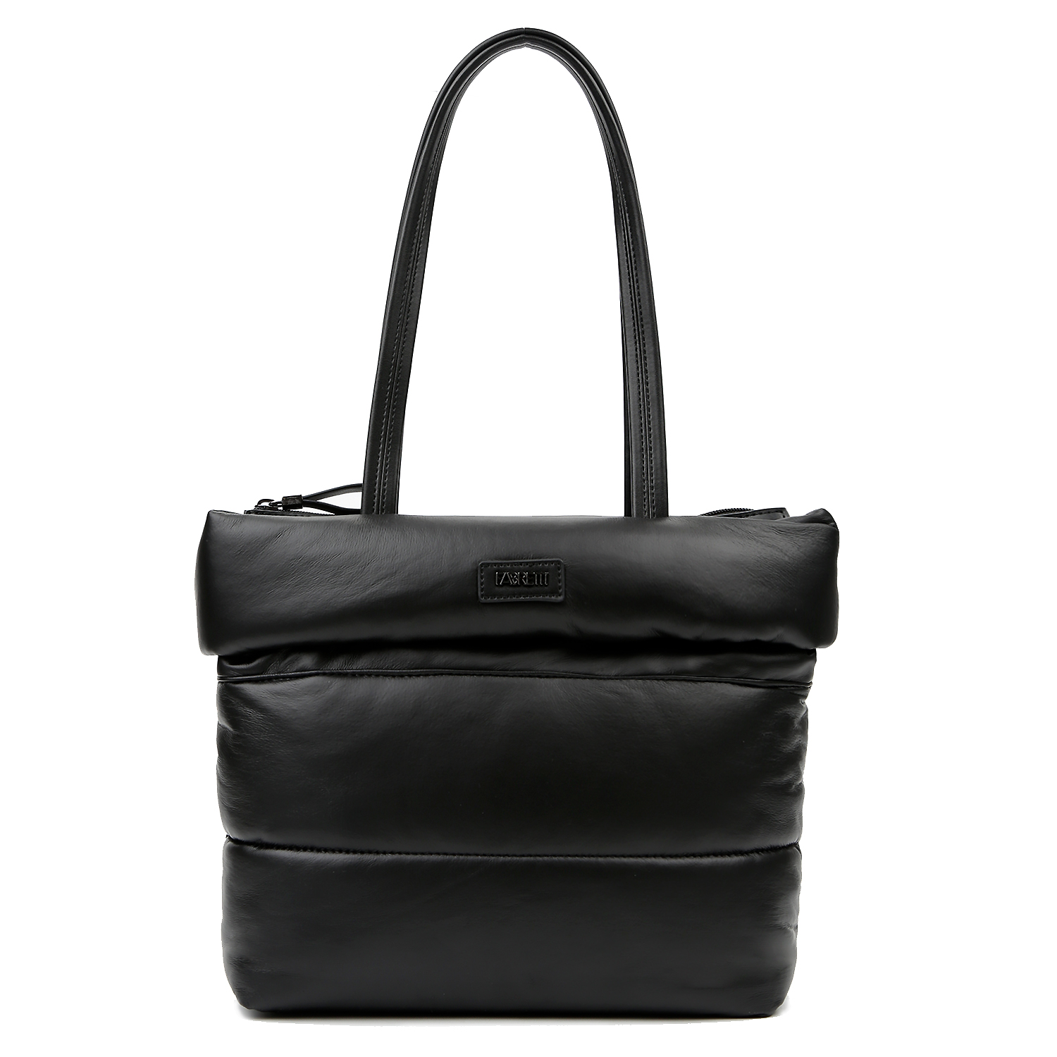 Стеганая сумка тоут среднего размера итальянского бренда FABRETTI выполнена из экокожи чёрного цвета. Модель оснащена двумя ручками длиной 63 см, удобными для ношения на плече. Основное отделение закрывается на молнию. Внутри расположены открытый карман и карман на молнии. На тыльной стороне — карман быстрого доступа. Цвет фурнитуры — серебро.