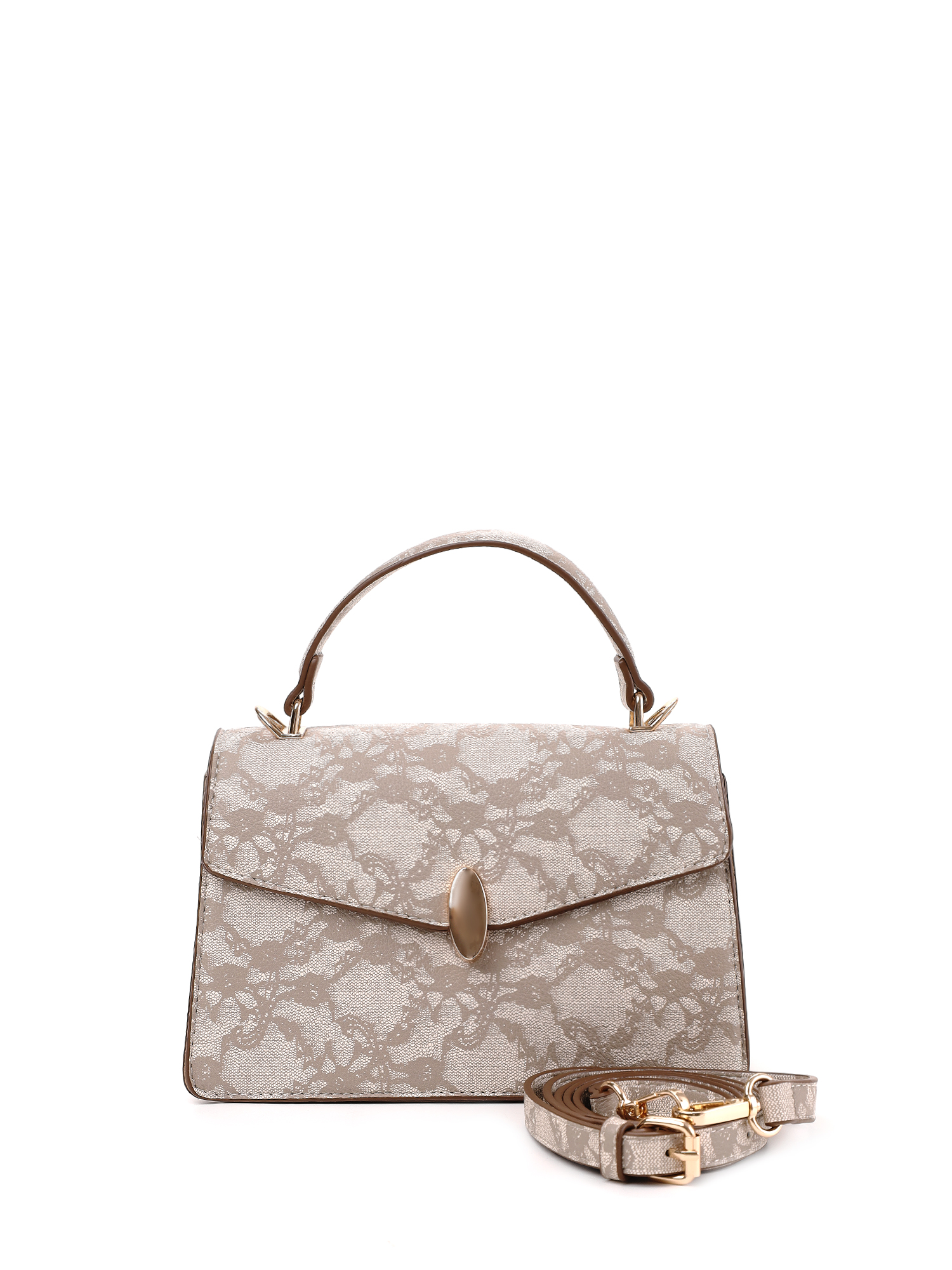 Компактная женская сумка кросс-боди с клапаном итальянского бренда FABRETTI из высококачественной зернистой экокожи серо-бежевого оттенка с интересным «ажурным» узором.