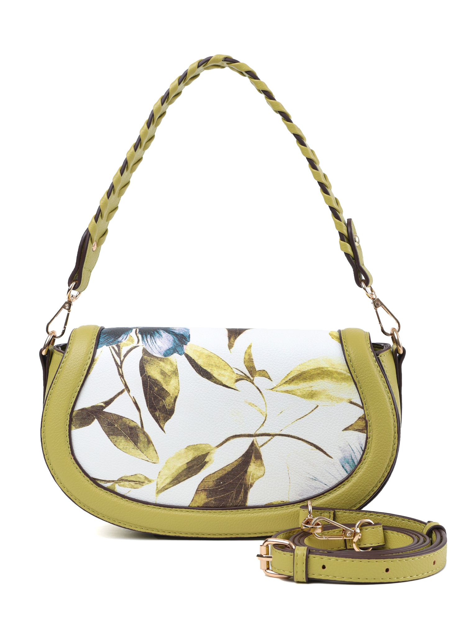 Небольшая женская сумка кросс-боди с клапаном итальянского бренда FABRETTI из высококачественной экокожи белого цвета с зернистой фактурой и растительными принтами. Удобный аксессуар для повседневного гардероба, который добавляет в образ неформальные акценты и смягчает его плавностью своего силуэта.
