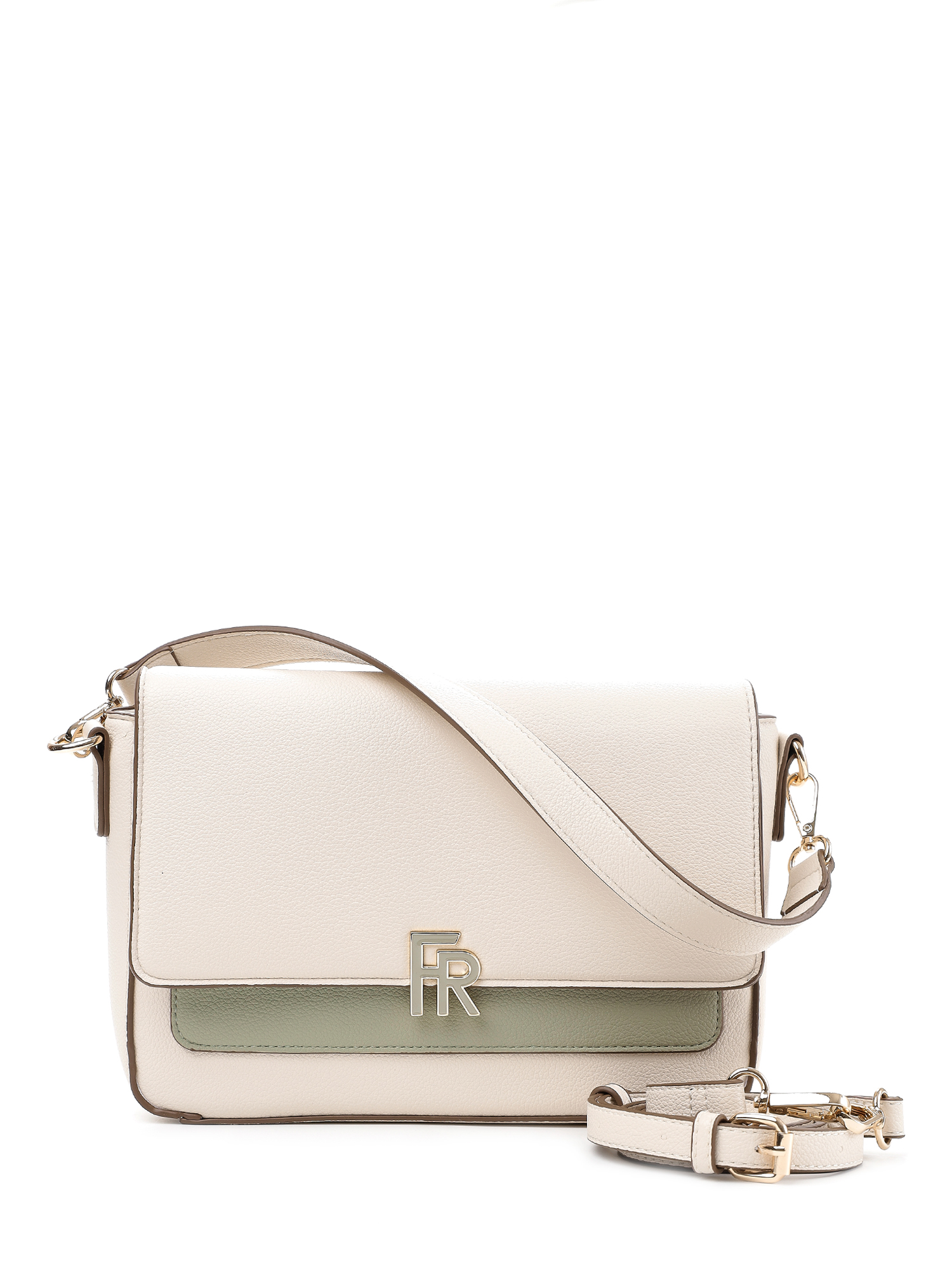 Прямоугольная женская сумка кросс-боди среднего размера с клапаном из коллекции итальянского бренда FABRETTI – образец лаконичности и стиля для повседневной городской моды. Она выполнена из зернистой экокожи молочного оттенка с пастельно-зеленой отделкой.
