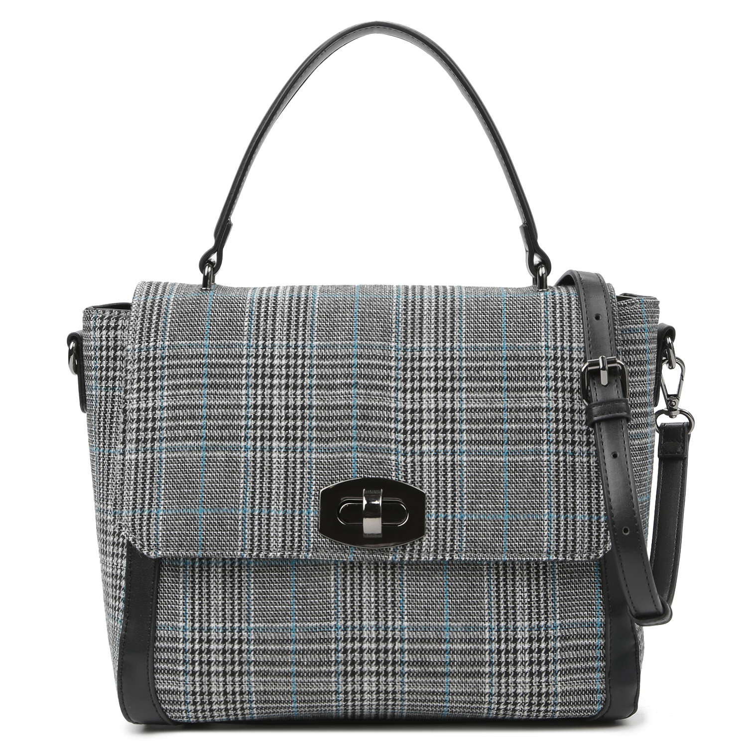 Сумка-сэтчел итальянского бренда FABRETTI выполнена из твида на экокоже с отделкой из экокожи в сером оттенке. Основное отделение закрывается на молнию и клапан-замок. Внутри расположены два открытых кармана и один карман на молнии. На тыльной стороне — карман быстрого доступа на молнии. Модель дополнена короткой ручкой длиной 32 см, а также съёмным регулируемым ремешком длиной 120–135 см и шириной 1,5 см. Цвет фурнитуры — серебро.