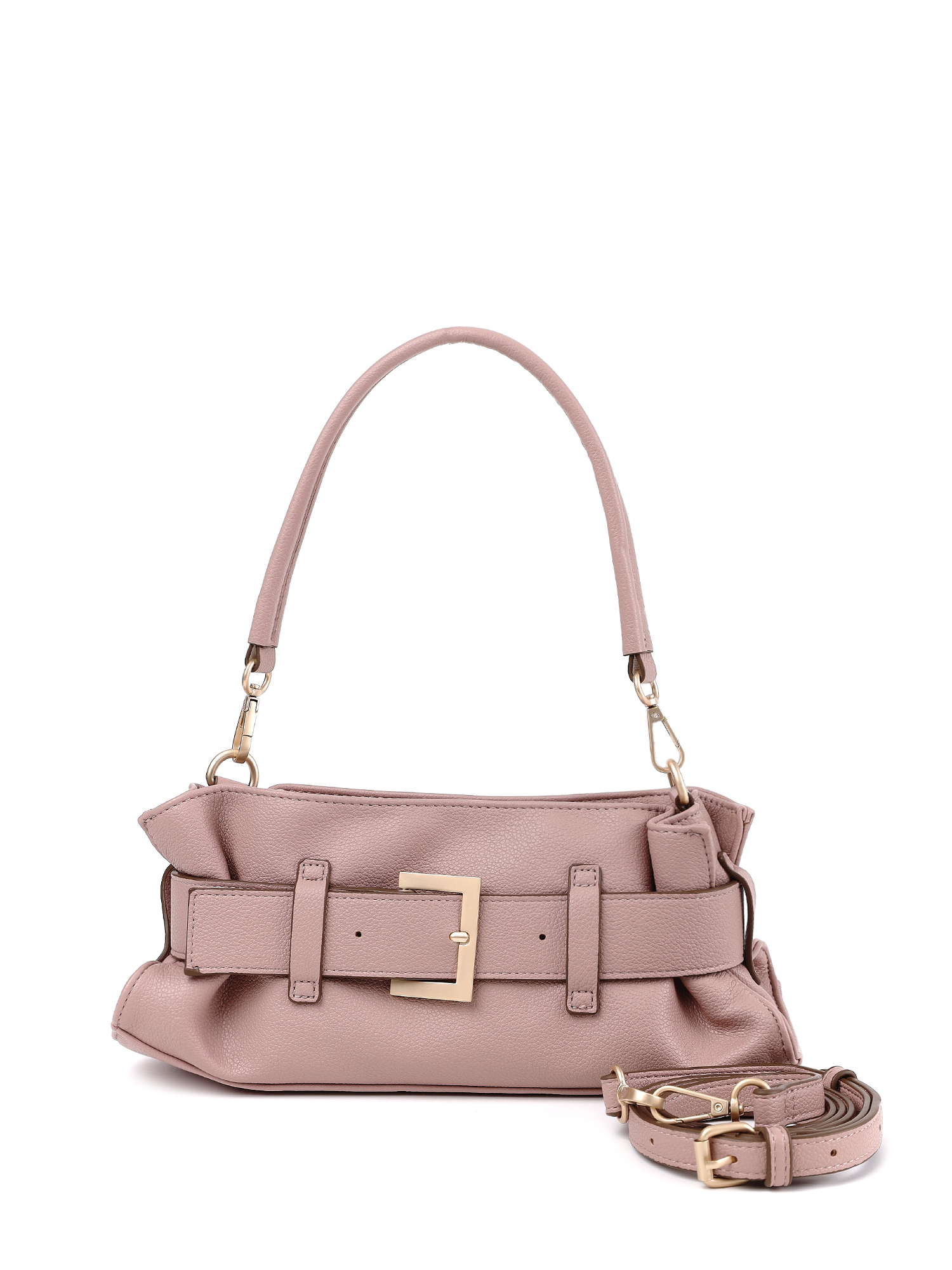 Миниатюрная женская сумка кросс-боди итальянского бренда FABRETTI из мягкой экокожи светло-розового цвета с зернистой фактурой – акцентный аксессуар, который привлекает внимание своим необычным дизайном. Декоративный ремень, проходящий по центру, стягивает сумку, придавая ей сходство с сумкой-кисетом. Объем легко регулируется пряжкой цвета матовое золото.