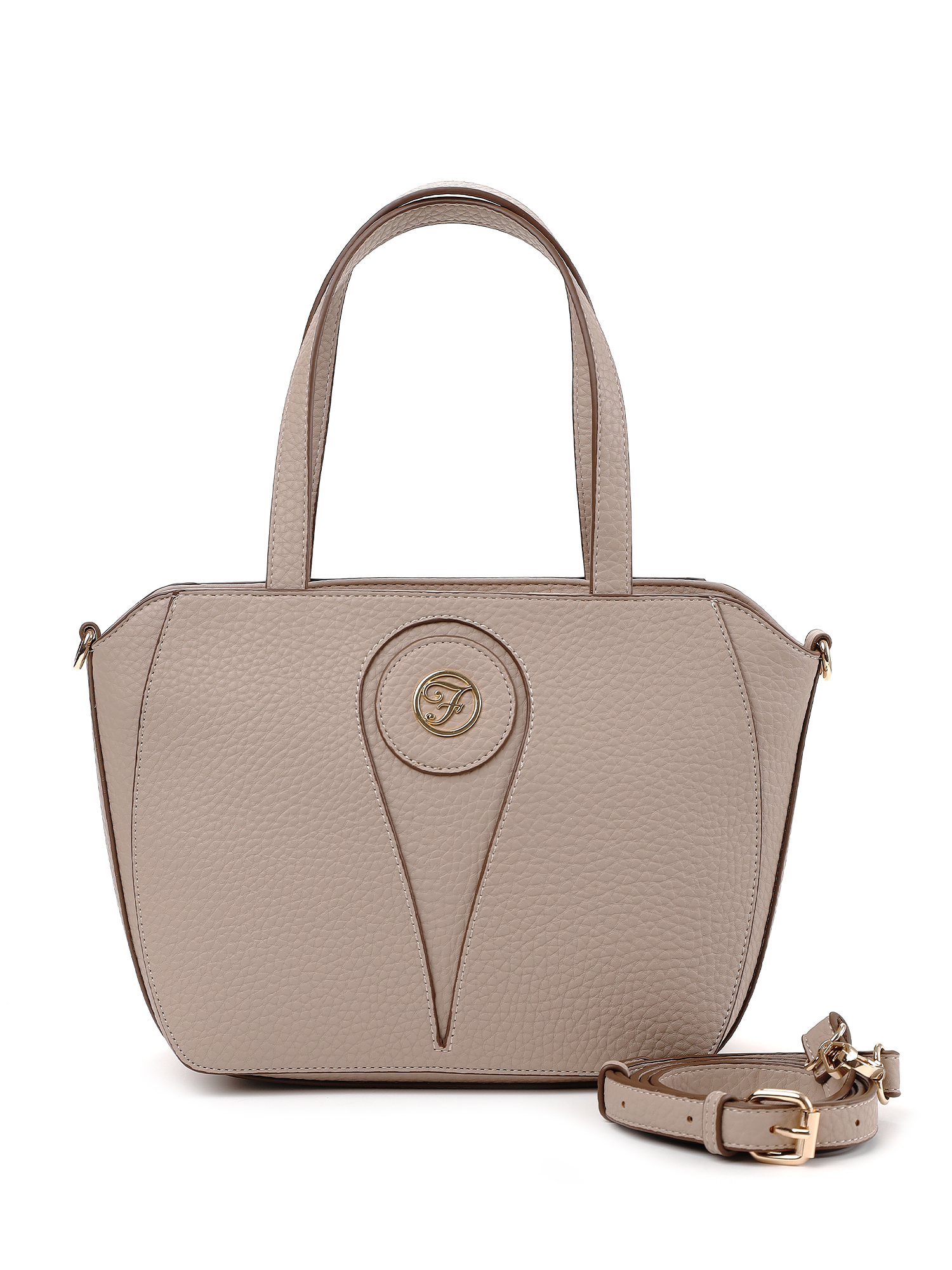 Женская сумка тоут итальянского бренда FABRETTI – классическая сумка-трапеция на длинных ручках, выполненная из нежной крупнозернистой экокожи «нюдового» бежевого оттенка.