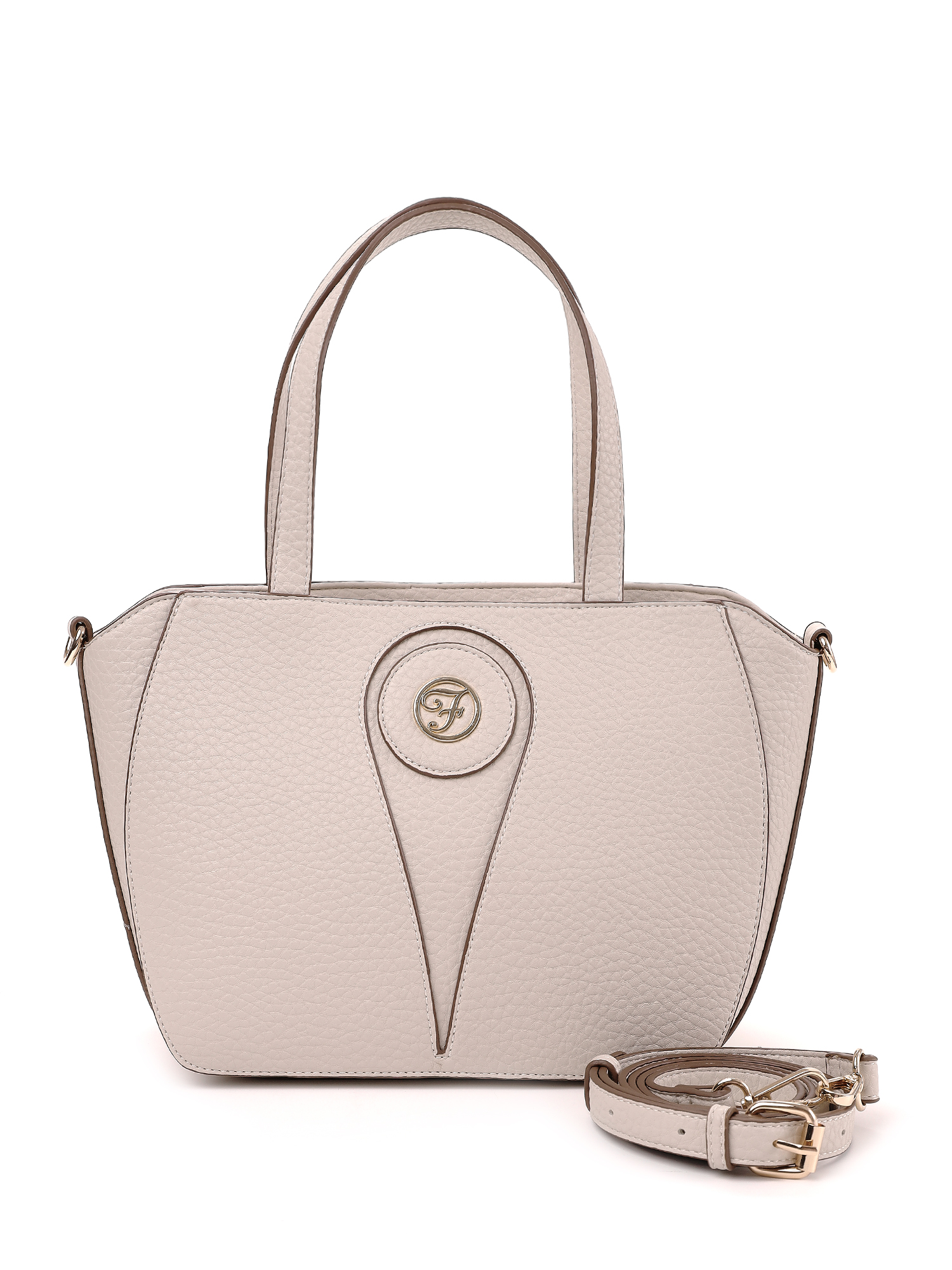 Женская сумка тоут итальянского бренда FABRETTI – классическая сумка-трапеция на длинных ручках, выполненная из нежной крупнозернистой экокожи светлого бежевого оттенка.