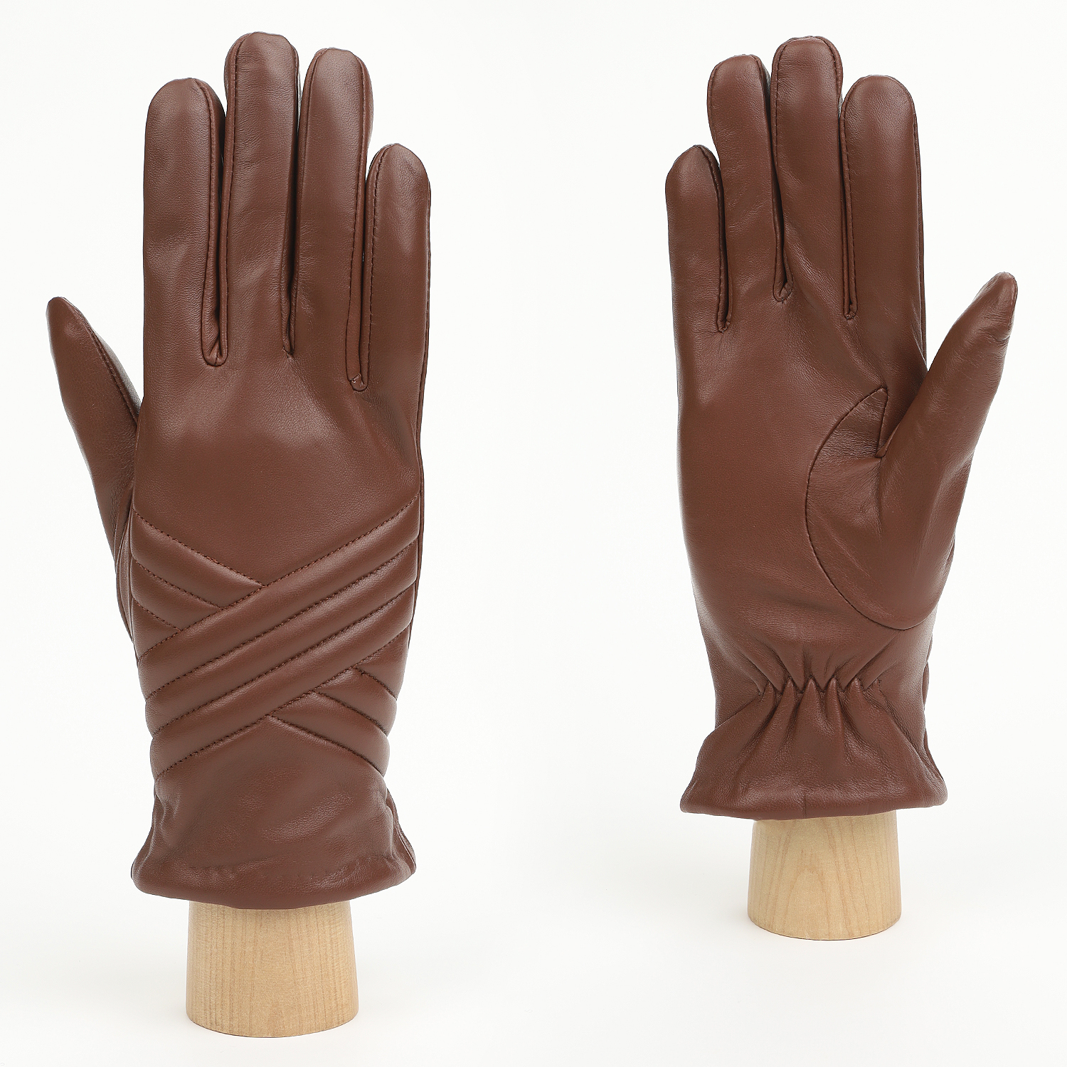 Лицевая сторона украшена узором из диагональных отстрочек. Для комфортной посадки перчатки дополнены резинкой внутри манжеты с тыльной стороны.
