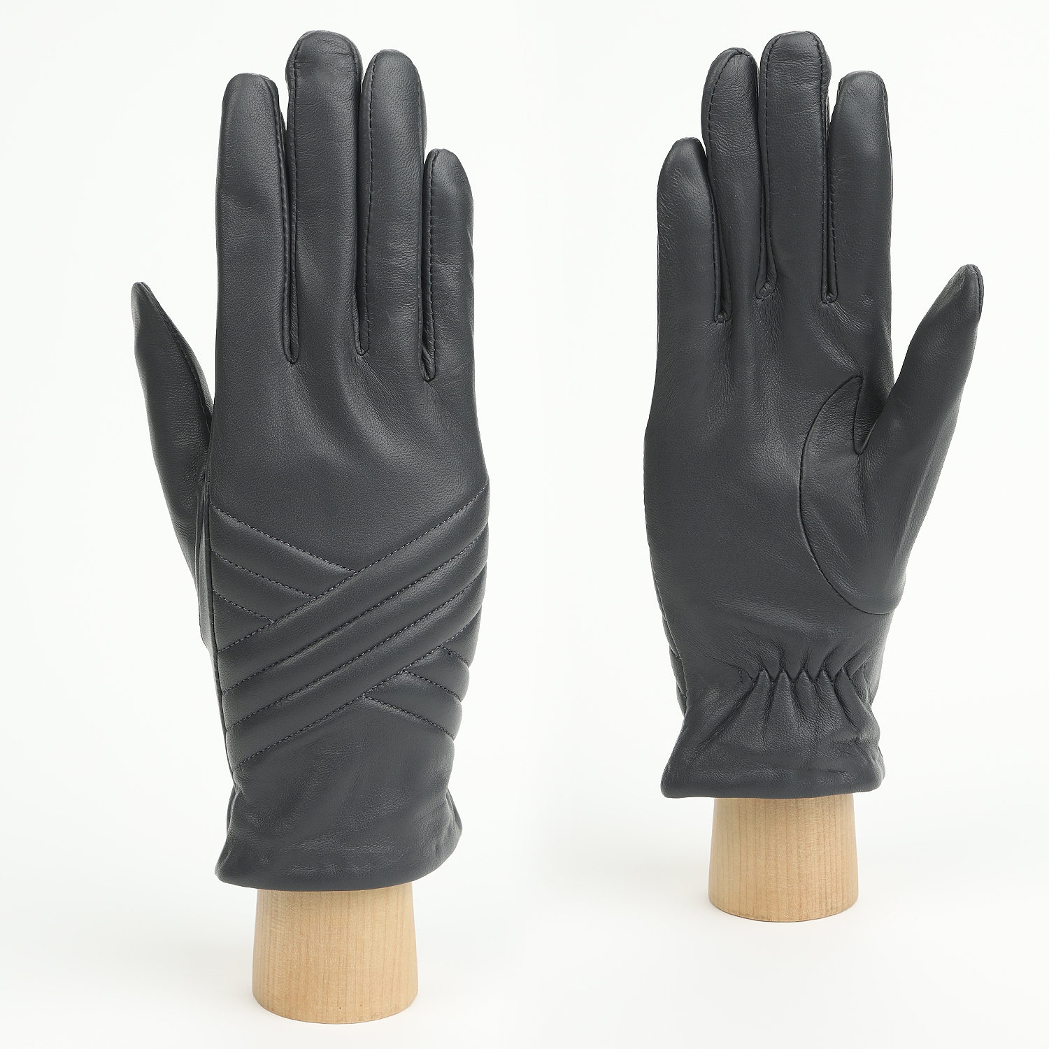 Лицевая сторона украшена узором из диагональных отстрочек. Для комфортной посадки перчатки дополнены резинкой внутри манжеты с тыльной стороны.