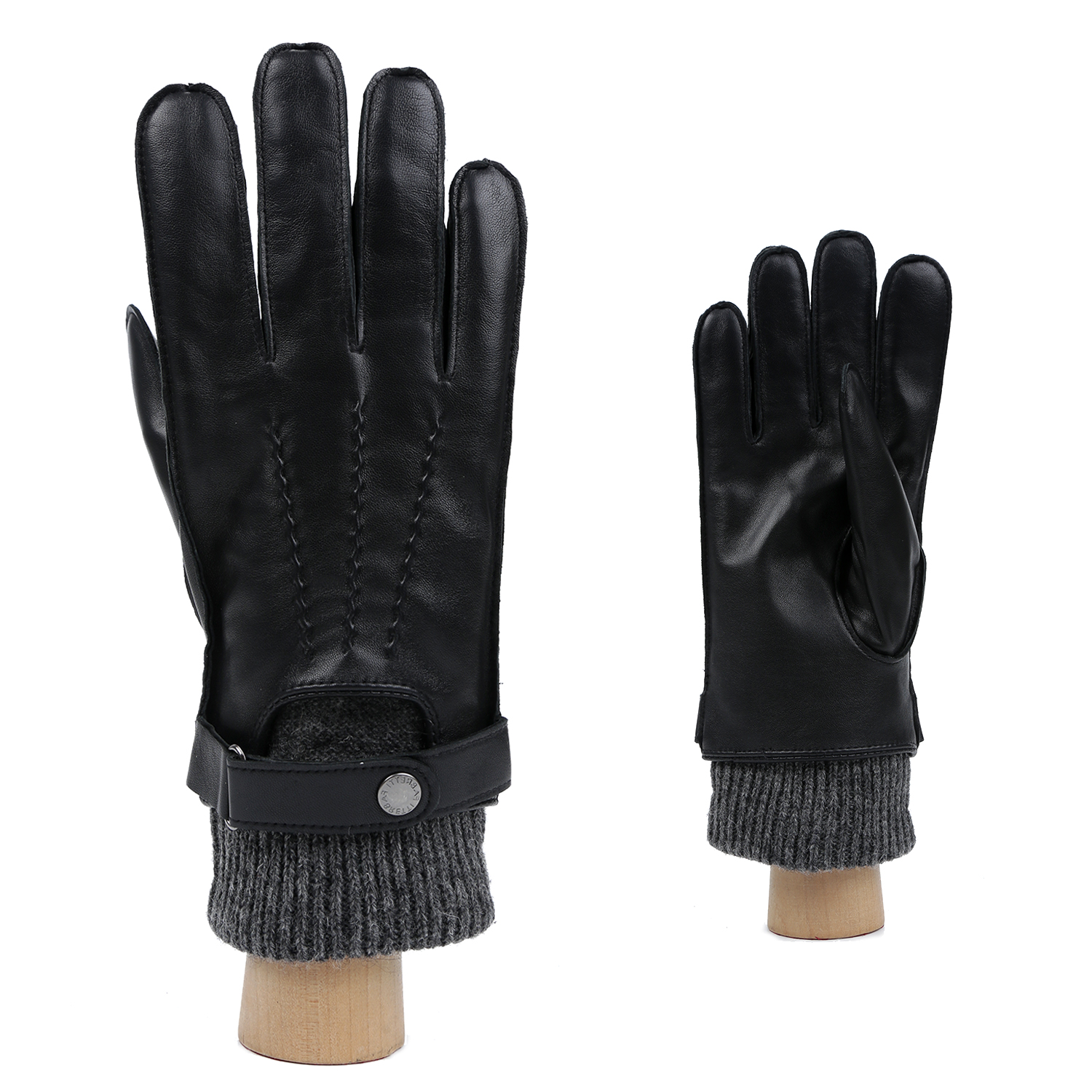 Теплые мужские перчатки итальянского бренда FABRETTI выполнены из натуральной кожи ягненка в черном цвете и отличаются гладкой фактурой. Модель дополнена подкладкой из теплой натуральной шерсти и необычно украшена удлиненными вязаными манжетами в рубчик серого цвета.