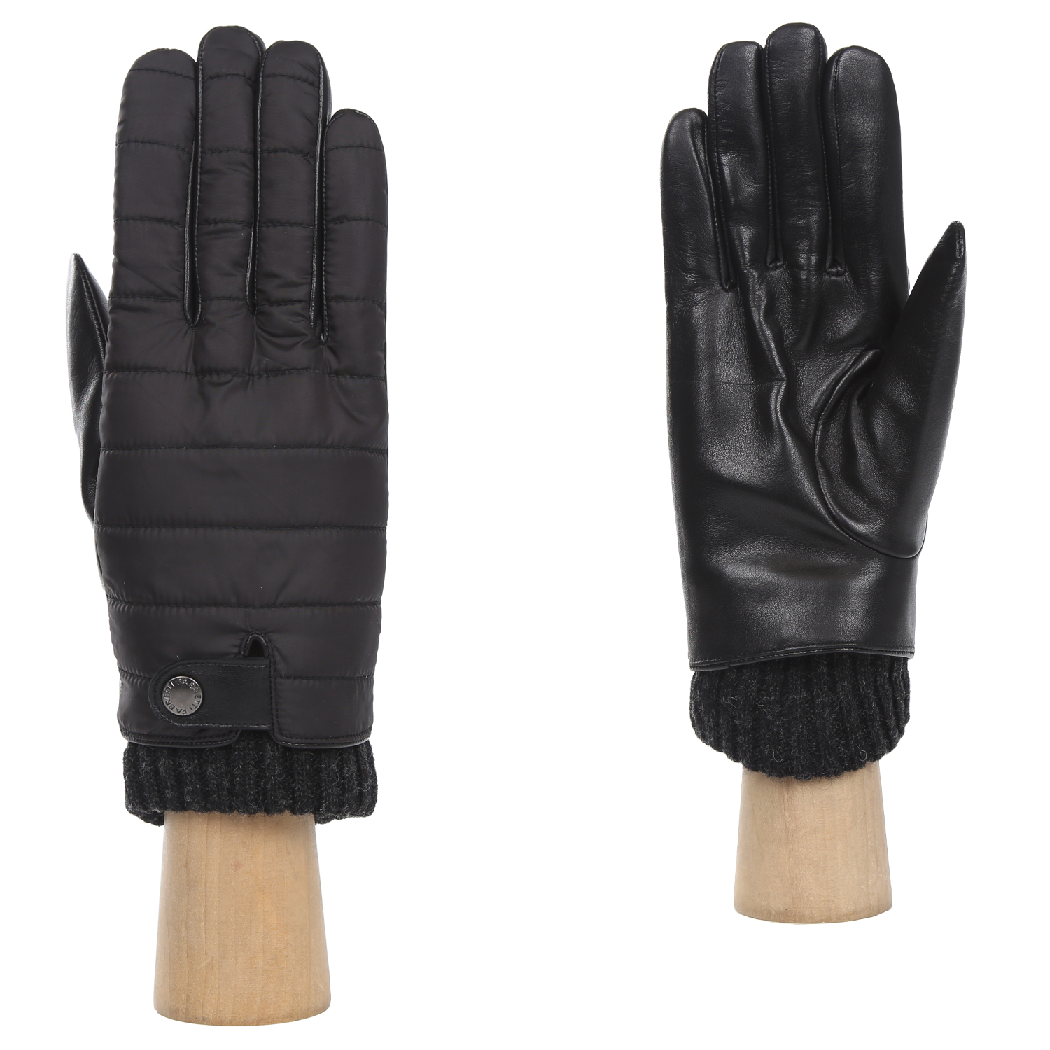 Комбинированные мужские перчатки FABRETTI в черном цвете сочетают нежную кожу ягненка на ладонной стороне и современный влагостойкий материал стеганой фактуры - на лицевой. Благодаря этой комбинации аксессуар безупречно сидит на руках и позволяет кистям комфортно двигаться. Манжеты дополнены вязаными шерстяными вставками. Перчатки снабжены функцией Touch Screen, что позволит пользоваться сенсорными устройствами, не снимая изделия. Подкладка из шерсти сохранит руки в тепле в холодный сезон. Прекрасный вариант для межсезонья и европейской зимы.