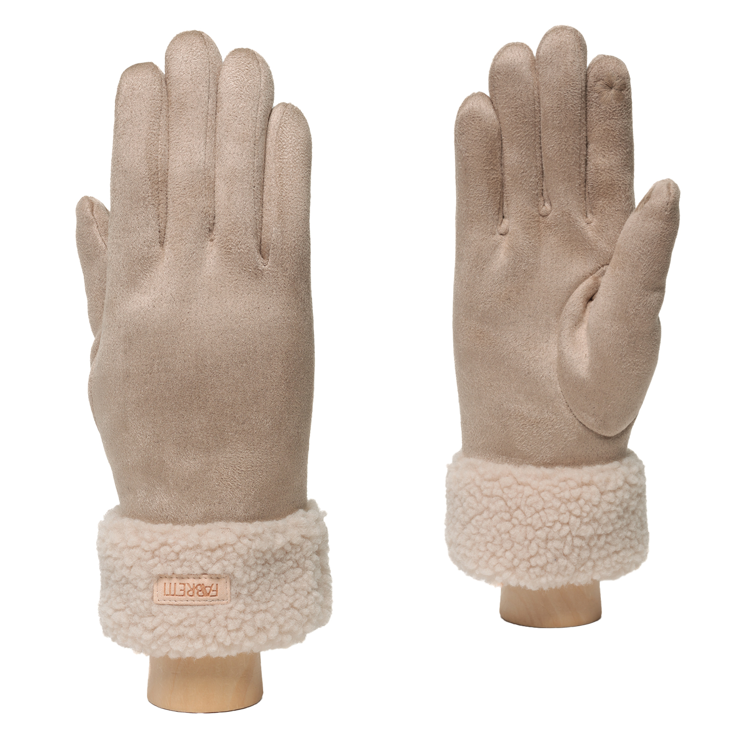 Уютные женские перчатки итальянского бренда FABRETTI из экозамши нежного оттенка топленого молока. Внутри модель дополнена теплым экомехом.