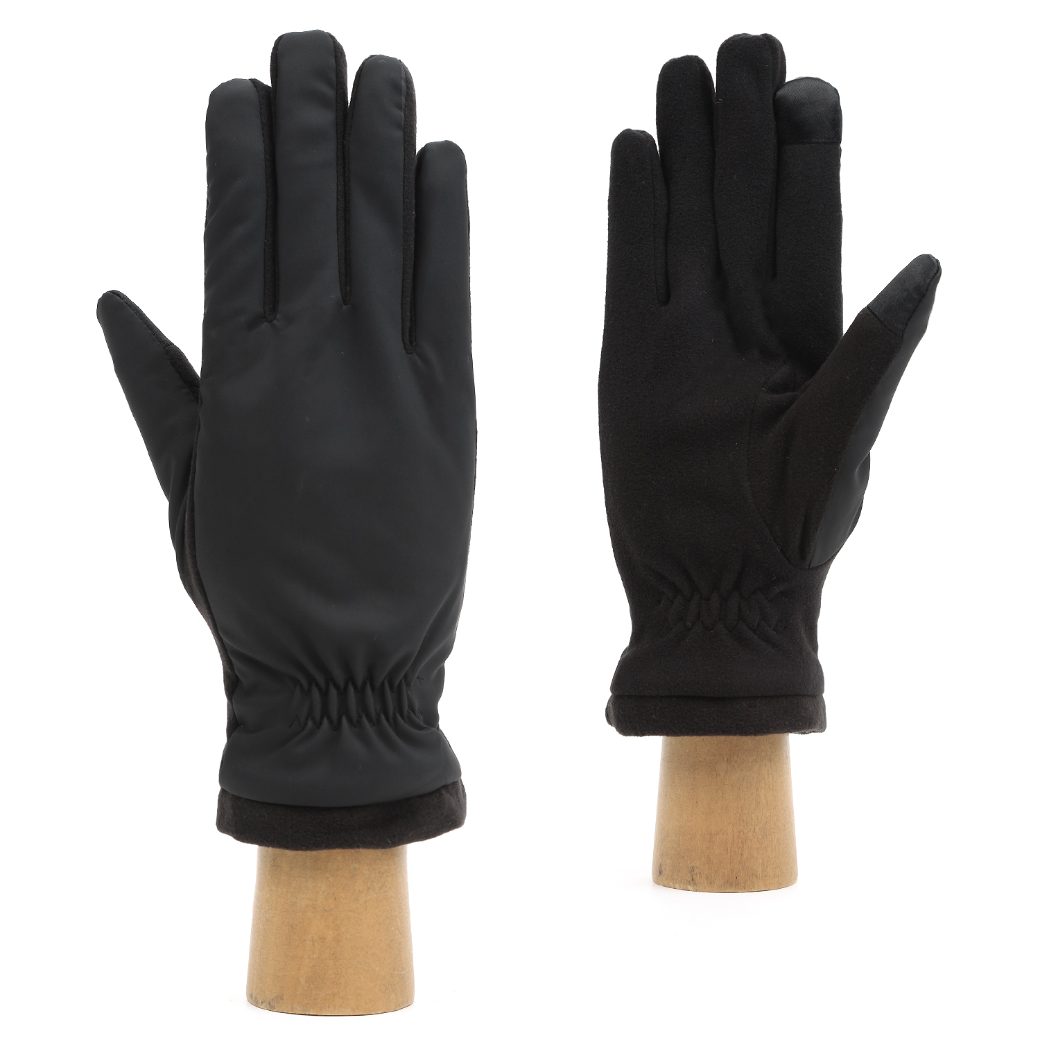 Стильные комбинированные мужские перчатки итальянского бренда FABRETTI в черном цвете сочетают мягкую экокожу на тыльной стороне и гладкую синтетическую ткань ветрозащитными свойствами - на лицевой стороне. Внутри модели подкладка из теплого экомеха.