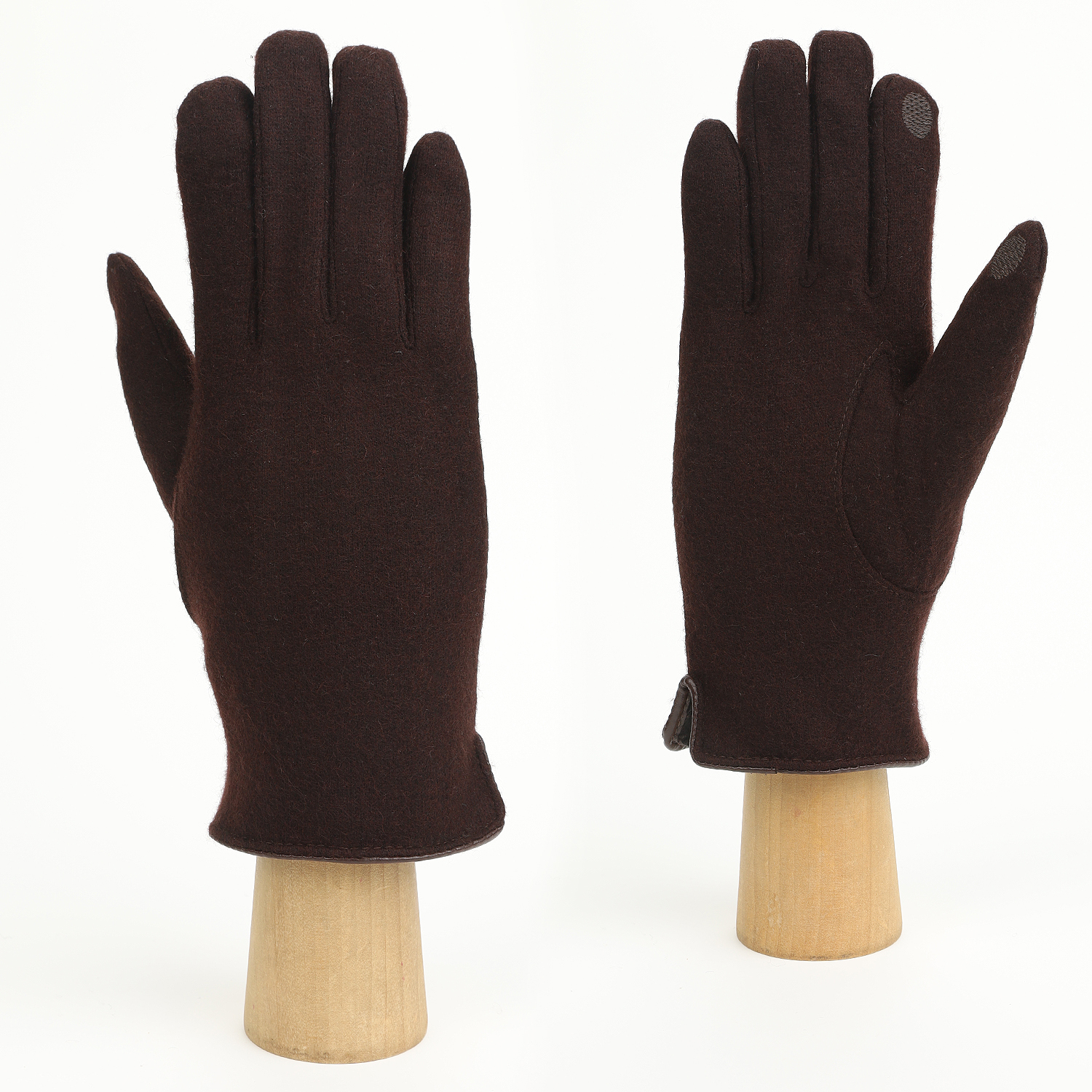Классические текстильные мужские перчатки итальянского бренда FABRETTI из натуральной шерсти в темно-коричневом цвете. Модель дополнена теплой подкладкой из экомеха.