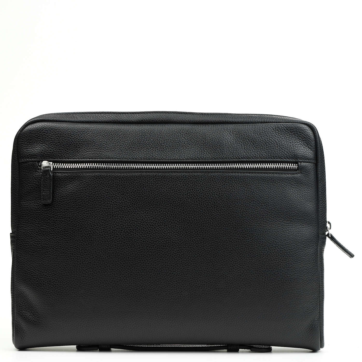 Лаконичная мужская сумка-папка для документов итальянского бренда FABRETTI выполнена из натуральной зернистой кожи черного цвета. Предназначена для ношения в руках, имеет кожаную ручку на дне. На тыльной стороне предусмотрен карман быстрого доступа на молнии.
