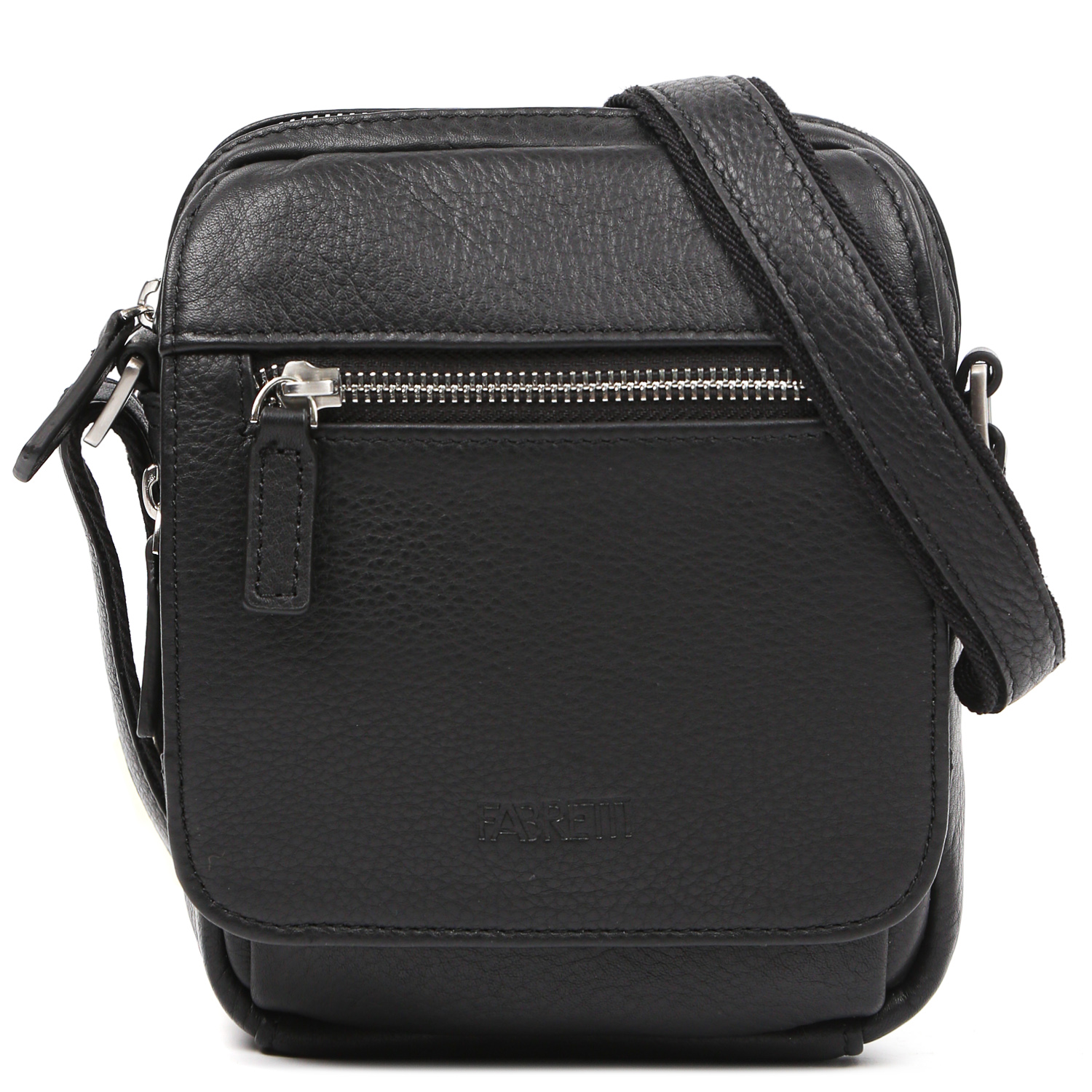 Компактная мужская кросс-боди FABRETTI выполнена из натуральной зернистой кожи в черном цвете. Основное отделение закрывается на полукруглую молнию. Внутри - 2 боковых кармана для мелочей: открытый и на молнии. На лицевой стороне, под клапаном на магнитной кнопке, находится вместительный карман на молнии, сверху, на клапане, также есть карман быстрого доступа на молнии. На тыльной стороне - открытый карман. Плечевой ремень регулируется по длине, ширина - 2,5 см. Цвет фурнитуры - серебро.