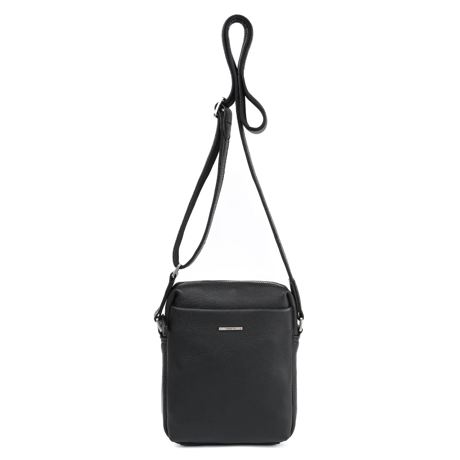 Небольшая мужская сумка кросс-боди итальянского бренда FABRETTI выполнена из натуральной зернистой кожи черного цвета. Сумка имеет одно отделение, которое закрывается на металлическую молнию. Внутри один открытый карман и один карман на молнии.