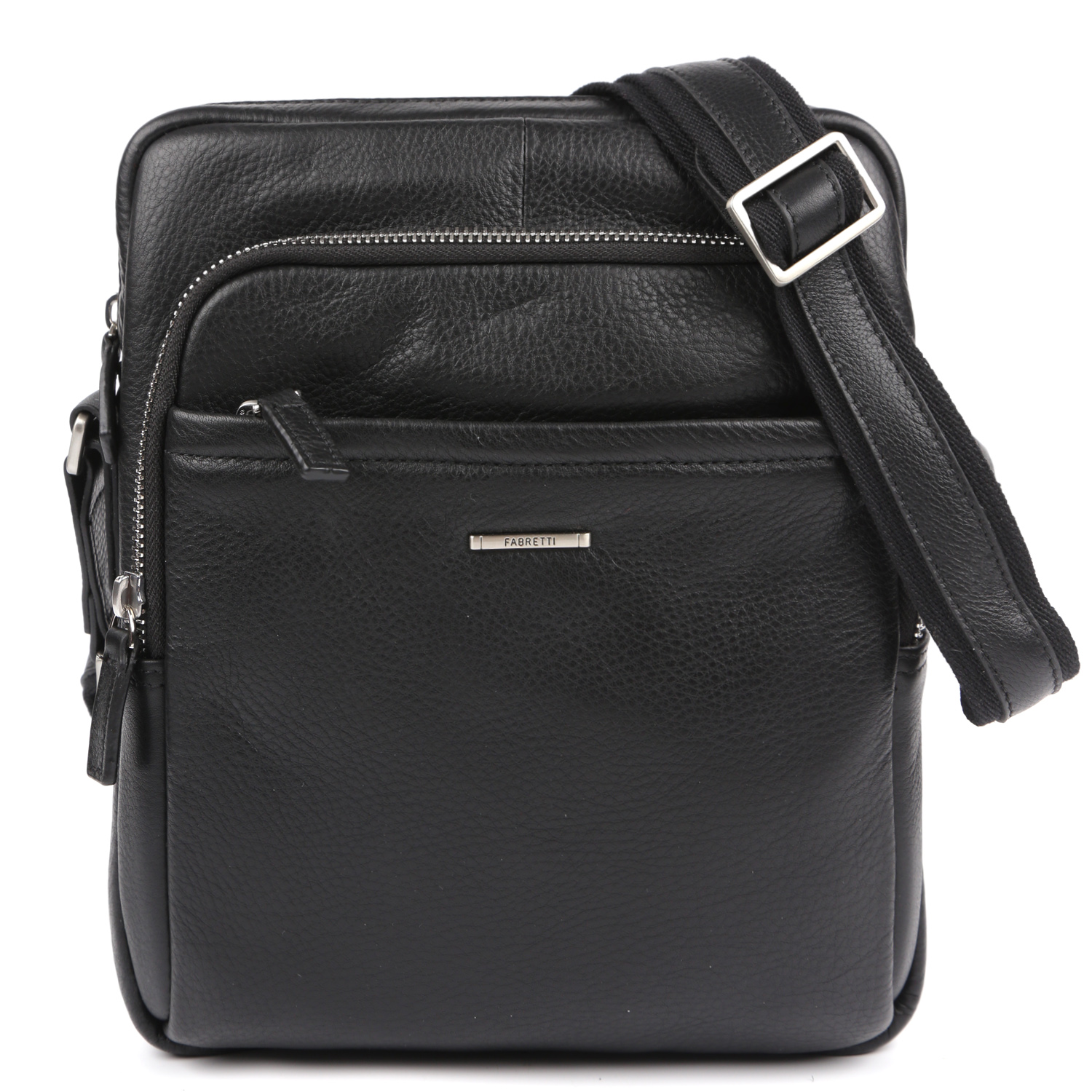Небольшая мужская сумка кросс-боди итальянского бренда FABRETTI выполнена из натуральной гладкой кожи черного цвета. Сумка имеет одно отделение, которое закрывается на полукруглую молнию. Внутри секция с мягкой стенкой для гаджетов или документов.