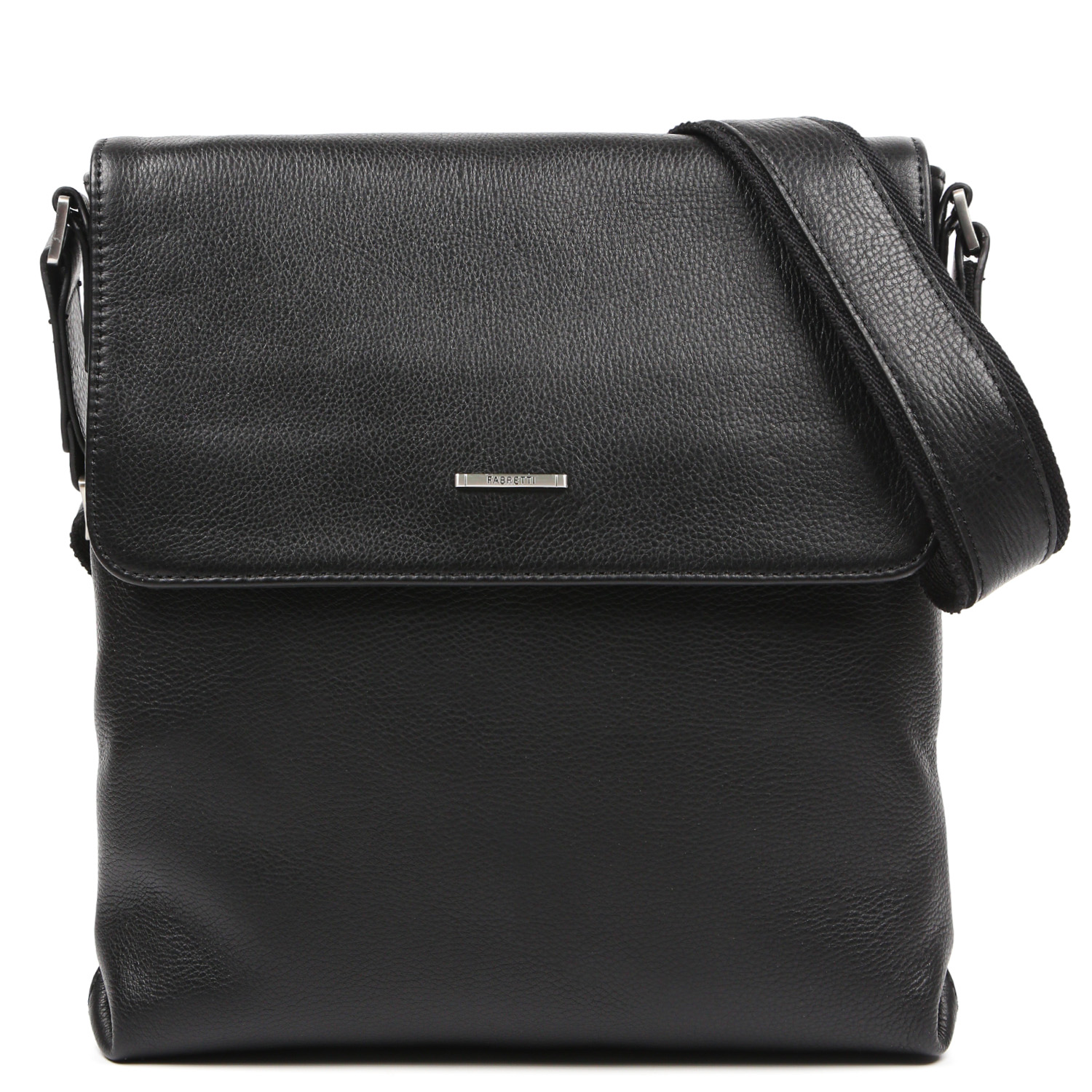 Вместительная мужская сумка на плечо FABRETTI выполнена из натуральной зернистой кожи в черном цвете. Сумка закрывается клапаном на магнитной кнопке. Основное отделение на молнии. Внутри 3 кармана для мелочей: 2 открытых и на молнии. На лицевой стороне, под клапаном, расположен вместительный открытый карман. На тыльной стороне есть карман быстрого доступа на молнии. Плечевой ремень регулируется по длине, ширина - 4 см. Цвет фурнитуры - серебро.