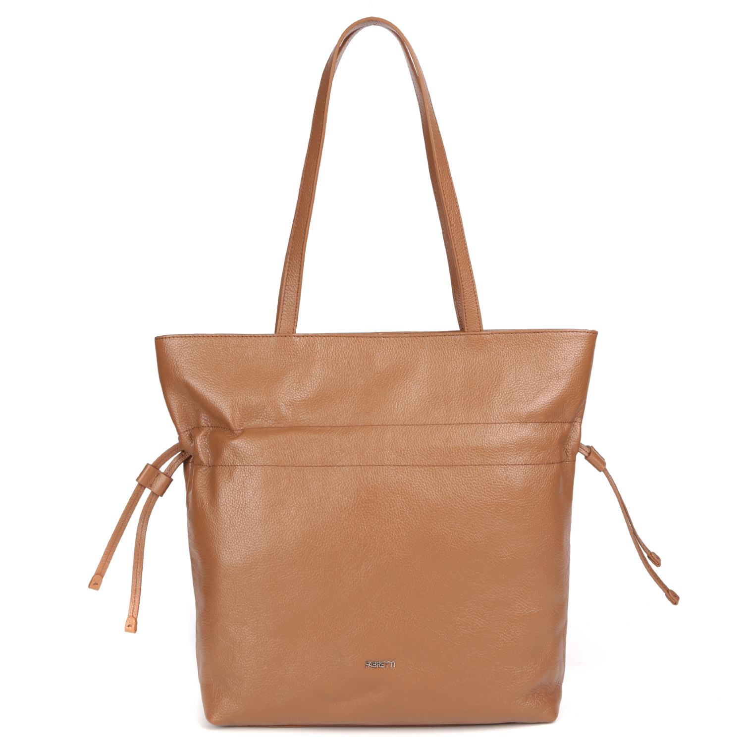 Вместительная сумка-шоппер FABRETTI в рыжем оттенке выполнена из натуральной зернистой кожи. Основное отделение закрывается на молнию с металлическим поводком. Внутри 3 боковых кармана для мелочей: 2 открытых и на молнии. Предусмотрена возможность регулировки объема с помощью кожаных утягивающих шнуров. Удлиненные ручки позволяют комфортно носить аксессуар на плече. Модель вмещает формат А4. Цвет фурнитуры – серебро.