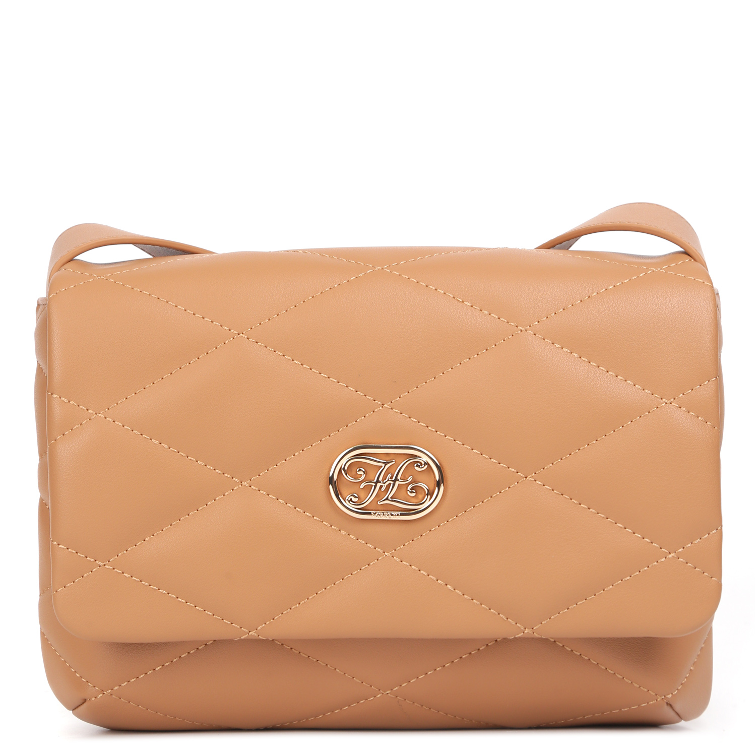 Компактная сумка на плечо FABRETTI в бежевом оттенке выполнена из натуральной гладкой кожи и декорирована ромбовидной стежкой. Сумка закрывается клапаном с магнитной кнопкой. Внутри 3 боковых кармана для мелочей: 2 открытых и на молнии. Плечевой ремень регулируется по длине, ширина - 2,5 см. Цвет фурнитуры - золото.