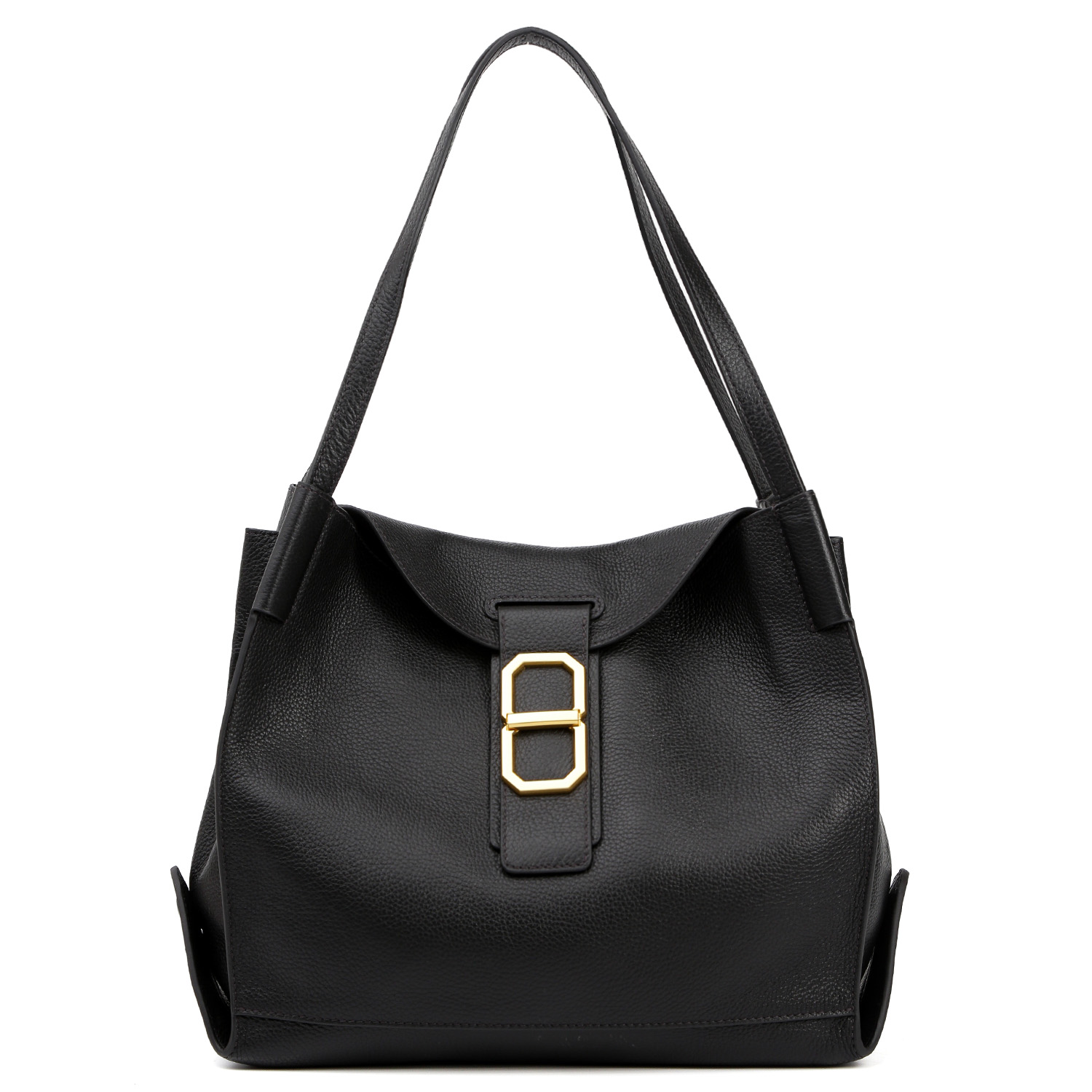 Сумка-хобо FABRETTI в черном цвете выполнена из натуральной зернистой кожи. Сумка закрывается клапаном на магнитной кнопке, крупная фурнитура гармонично дополняет дизайн изделия. Внутри 3 отделения, среднее – на молнии, а также 2 кармана для мелочей: открытый и на молнии. Две ручки позволяют комфортно носить аксессуар в руке или на плече. Цвет фурнитуры - золото.