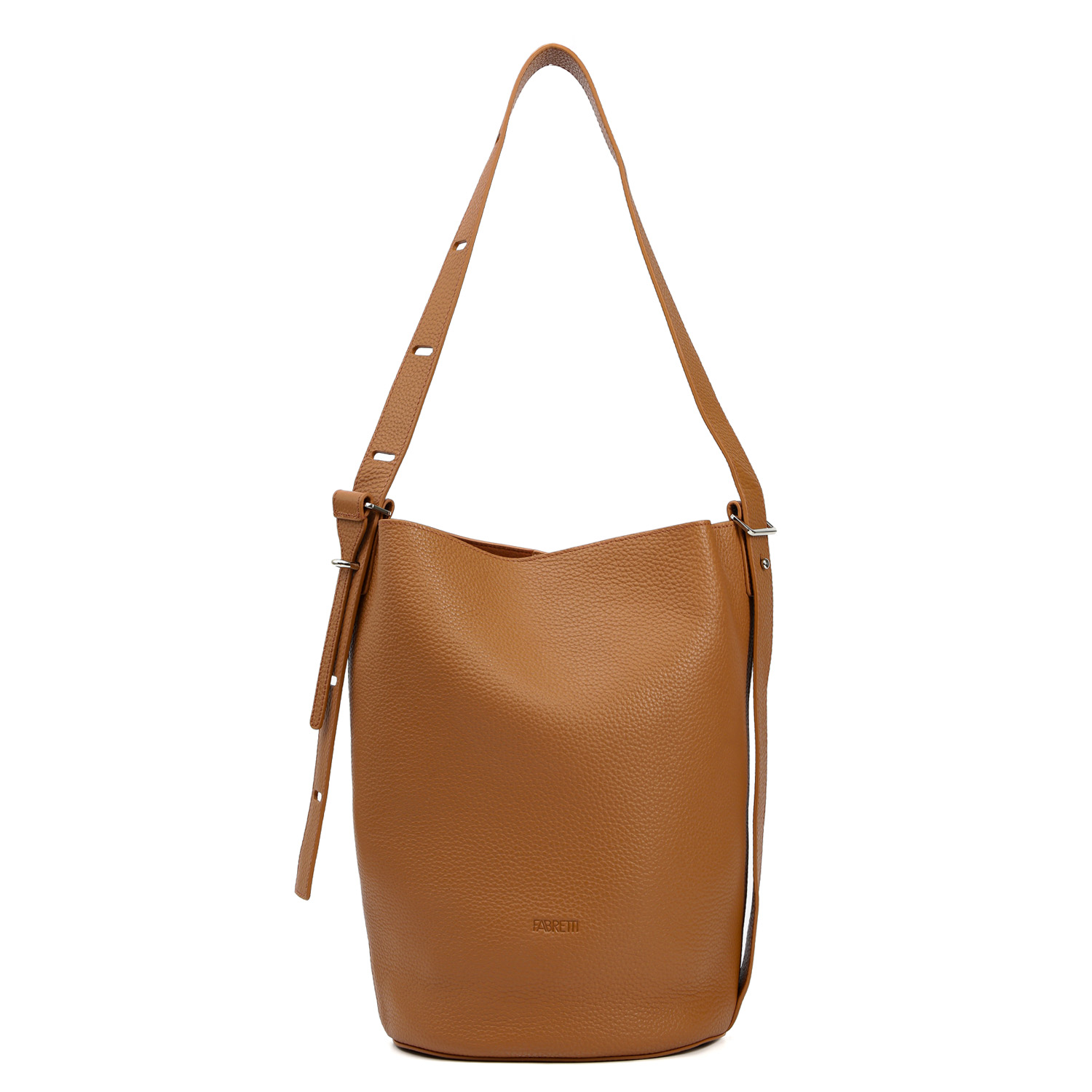 Вместительная сумка-ведро FABRETTI в рыжем оттенке выполнена из натуральной зернистой кожи и отличается минималистичным дизайном. Просторное отделение закрывается на магнитную кнопку. Плечевой ремень регулируется по длине, ширина - 3 см. Цвет фурнитуры - серебро.