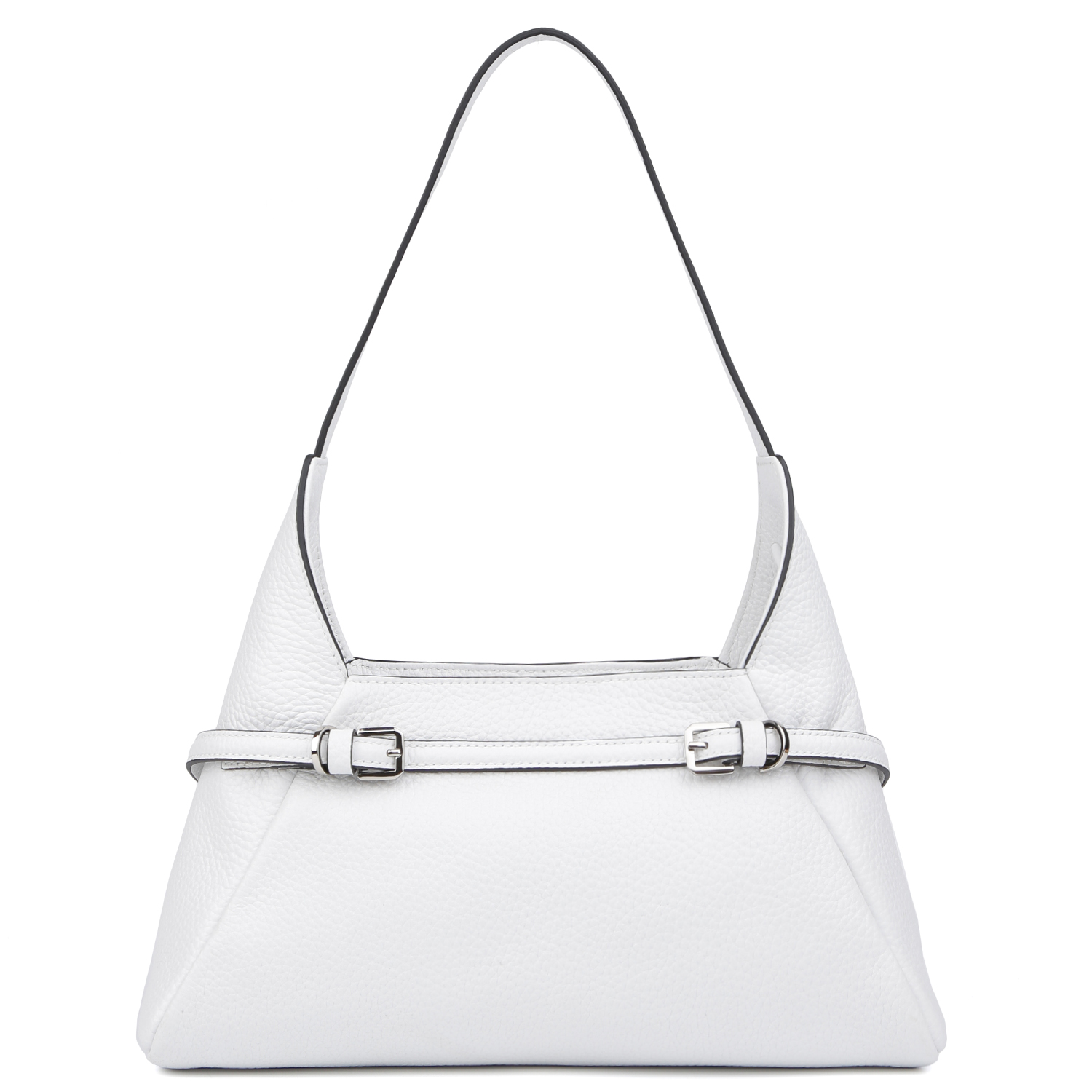 Компактная сумка на плечо FABRETTI в белом цвете выполнена из натуральной высококачественной зернистой кожи, приятной на ощупь. Сумка закрываетя на молнию с металлическим поводком. Внутри 2 кармана для мелочей: открытый и на молнии. Лицевая сторона декорирована изящным ремешком. Ширина плечевого ремня - 2 см. Цвет фурнитуры - серебро.