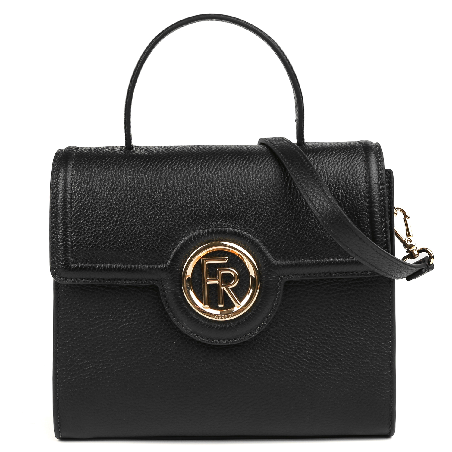 Стильная сумка-сэтчел FABRETTI в черном цвете выполнена из натуральной высококачественной зернистой кожи, приятной на ощупь. Основное отделение закрывается клапаном с магнитной кнопкой. Внутри 3 кармана для мелочей: 2 открытых и на молнии. Лицевая сторона декорирована фурнитурой с монограммой бренда. На тыльной стороне предусмотрен карман быстрого доступа на молнии. Ручка сверху позволяет комфортно носить аксессуар в руке. Съемный плечевой ремень регулируется по длине, ширина - 1,5 см. Цвет фурнитуры - золото.