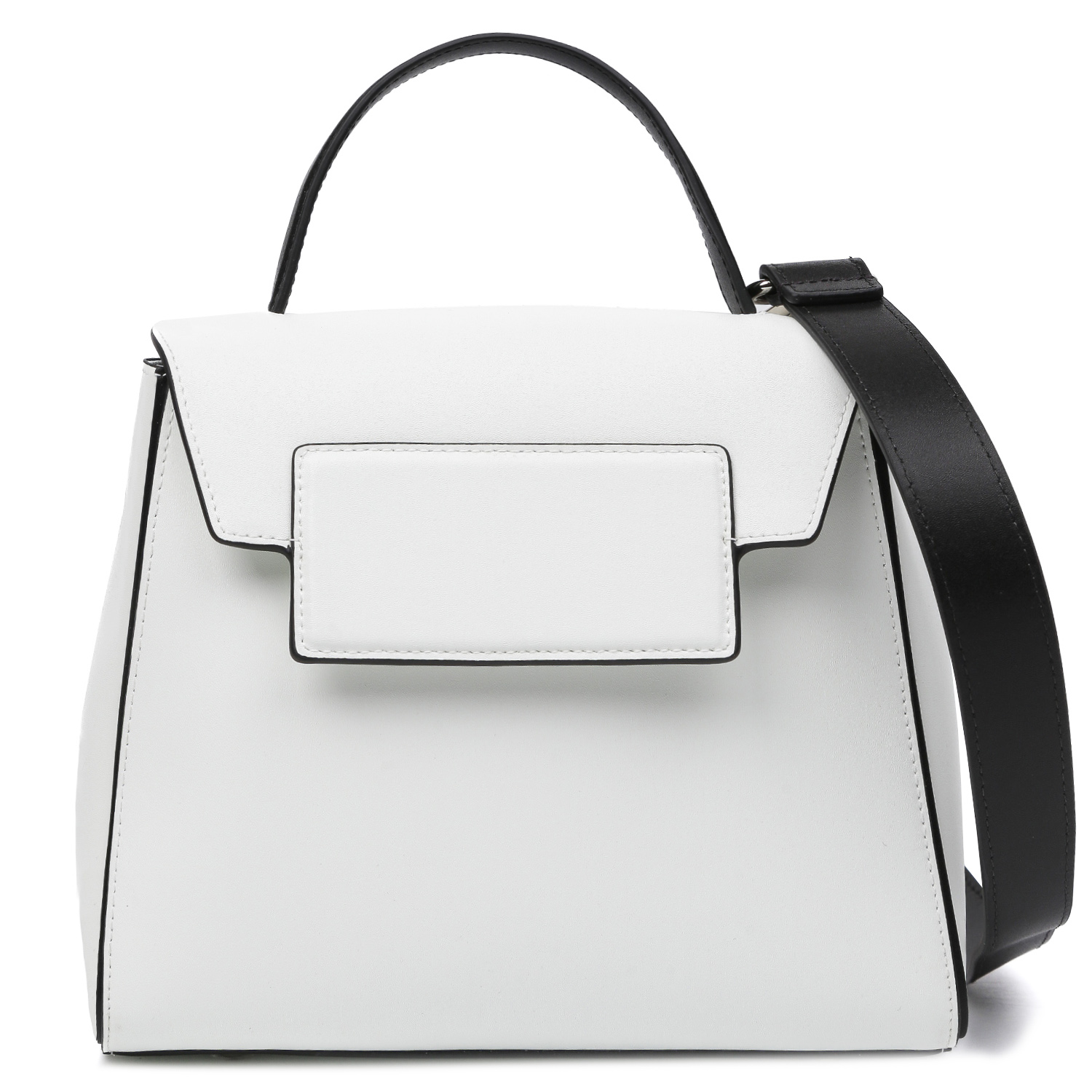 Компактная сумка-сэтчел FABRETTI выполнена из натуральной высококачественной кожи плотной гладкой фактуры, приятной на ощупь. Прекрасно держит форму. В дизайне изделия эффектно сочетаются белый и черный цвета. Сумка закрывается клапаном с магнитной кнопкой. Внутри 2 кармана для мелочей: открытый и на молнии. Дно сумки защищают 4 металлические ножки. Ручка сверху позволяет комфортно носить аксессуар в руке. Съемный плечевой ремень регулируется по длине, ширина - 2,5 см. Цвет фурнитуры - серебро.