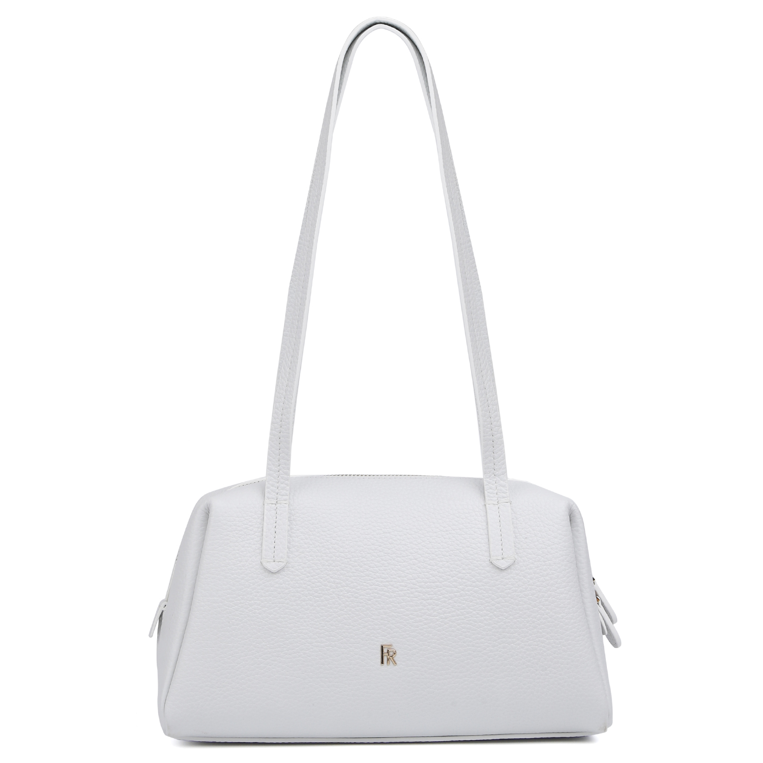 Стильная сумка на плечо FABRETTI в белом цвете выполнена из натуральной высококачественной зернистой кожи, приятной на ощупь. Основное отделение закрывается на молнию с кожаным поводком. Внутри находится карман на молнии для самых ценных вещей. Элегантные длинные ручки позволяют удобно носить сумку на плече. На лицевой стороне закреплены блестящие буквы FR - логотип бренда. Цвет фурнитуры - золото.