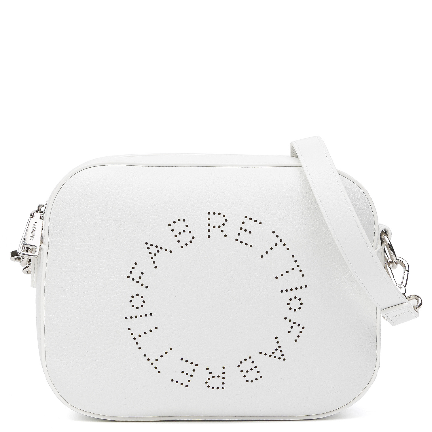 Компактная сумка кросс-боди FABRETTI в белом цвете выполнена из натуральной высококачественной зернистой кожи, приятной на ощупь, и на лицевой стороне декорирована перфорацией с логотипом бренда. Сумка закрывается на полукруглую молнию. Внутри 2 кармана для мелочей: открытый и на молнии. Съемный плечевой ремень регулируется по длине, ширина - 2 см. Цвет фурнитуры - серебро.