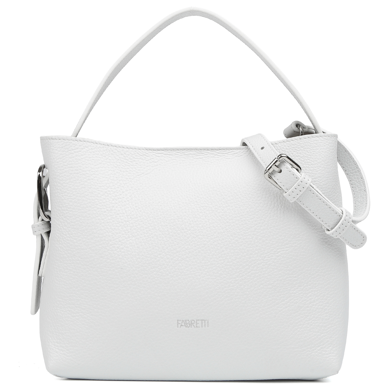 Сумка-хобо FABRETTI. Белый оттенок натуральной высококачественной зернистой кожи, приятной на ощупь. Основное отделение закрывается на прочную молнию, а внутри находятся два кармана: открытый и на молнии. Логотип бренда четко выделяется на лицевой стороне. Оригинальный плечевой ремень, обеспечивающий удобство ношения, имеет регулируемую длину. А фурнитура подчеркивает стильную эстетику. Цвет фурнитуры - серебро.