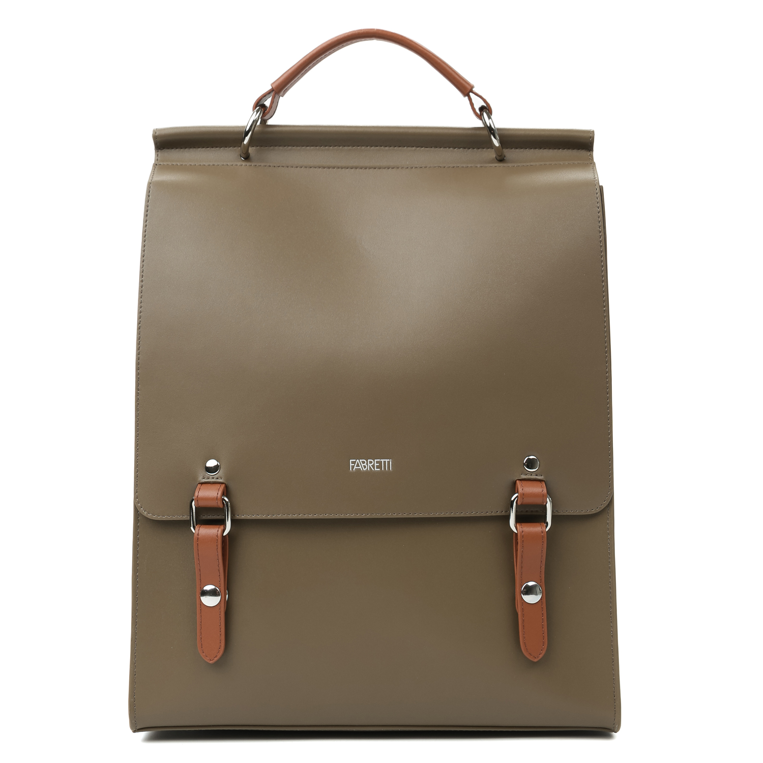 Лаконичный женский городской рюкзак FABRETTI в оттенке хаки. Выполнен из натуральной высококачественной гладкой кожи. Имеет регулируемые лямки с пряжками, а также ручку для комфортного ношения в руке. Основное отделение закрывается на две магнитные кнопки. Внутри основного отделения - дополнительный отсек для документов и гаджетов, карман на молнии, два кармана быстрого доступа, и два кармашка для стилусов или канцелярии. Спереди рюкзак украшает серебристый логотип бренда. Цвет фурнитуры - серебро. Материал подкладки: полиэстер.