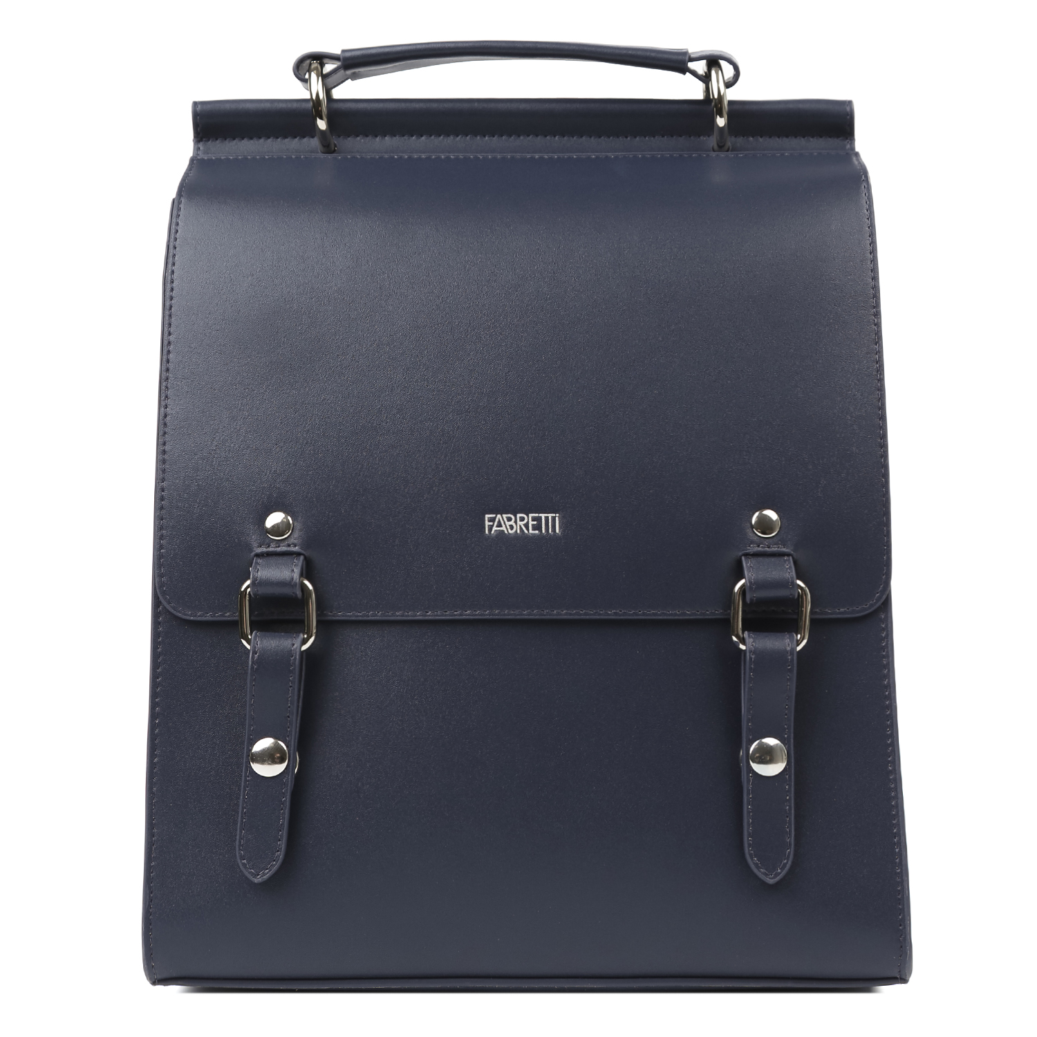 Лаконичный женский городской рюкзак FABRETTI темно-синего цвета. Выполнен из натуральной высококачественной гладкой кожи. Имеет регулируемые лямки с пряжками, а также ручку для комфортного ношения в руке. Основное отделение закрывается на две магнитные кнопки. Внутри основного отделения - карман на молнии и карман быстрого доступа. Спереди рюкзак украшает серебристый логотип бренда. Цвет фурнитуры - серебро. Материал подкладки: полиэстер.